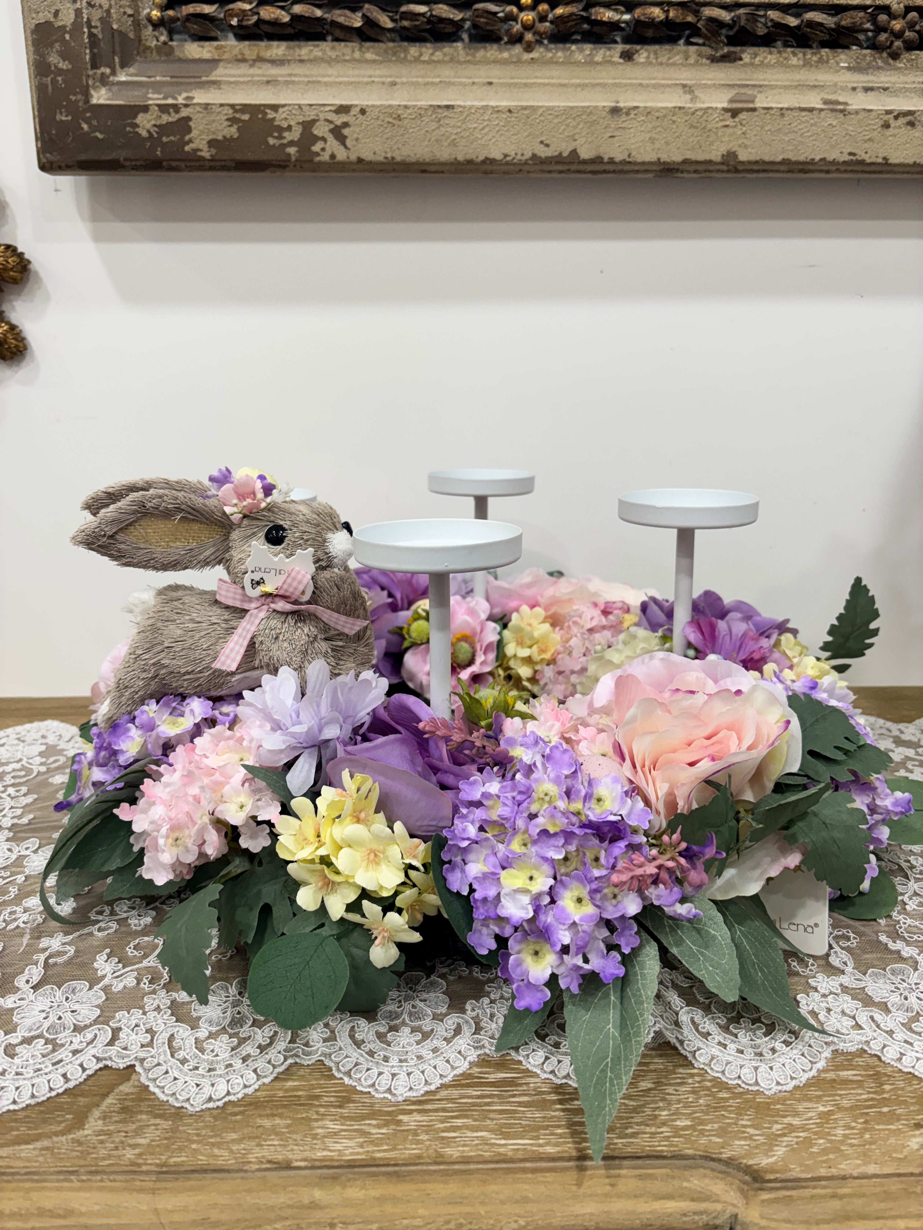 Fiori di lena centrotavola “Giardino Pasquale Incantato” con coniglietto removibile