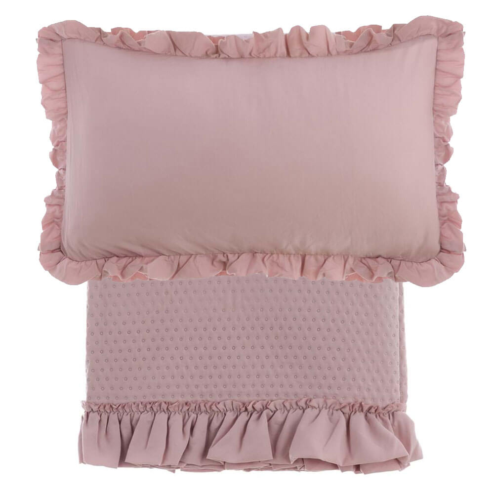 Blanc Mariclò Trapuntino Matrimoniale con Gala e copriguanciali "Acquarello" colore rosa