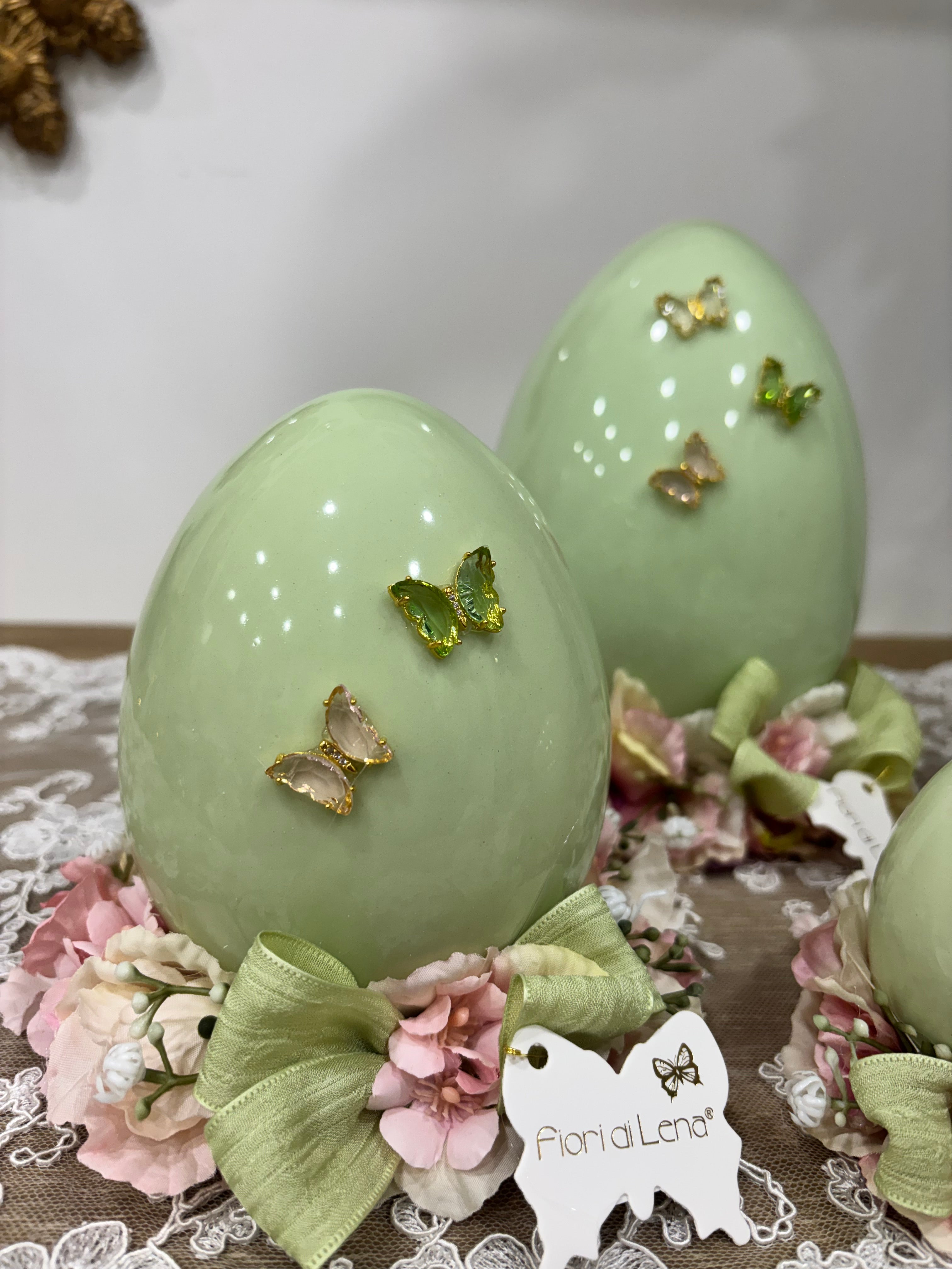 Fiori di Lena Uova in Ceramica Colore Verde "Petali e Farfalle"