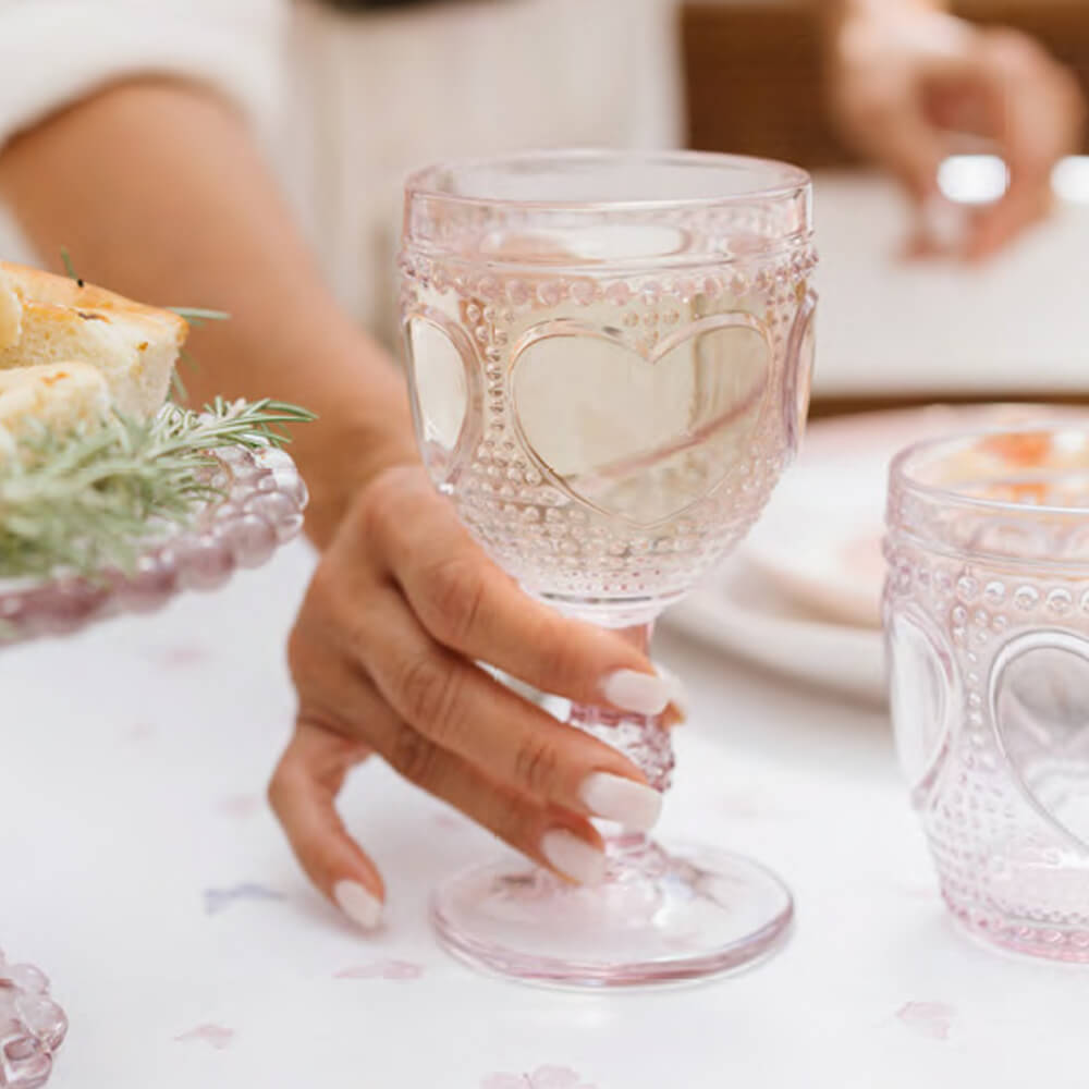 Nuvole di Stoffa Set 6 Calici in Vetro Rosa "Heart" con Cuore a Rilievo