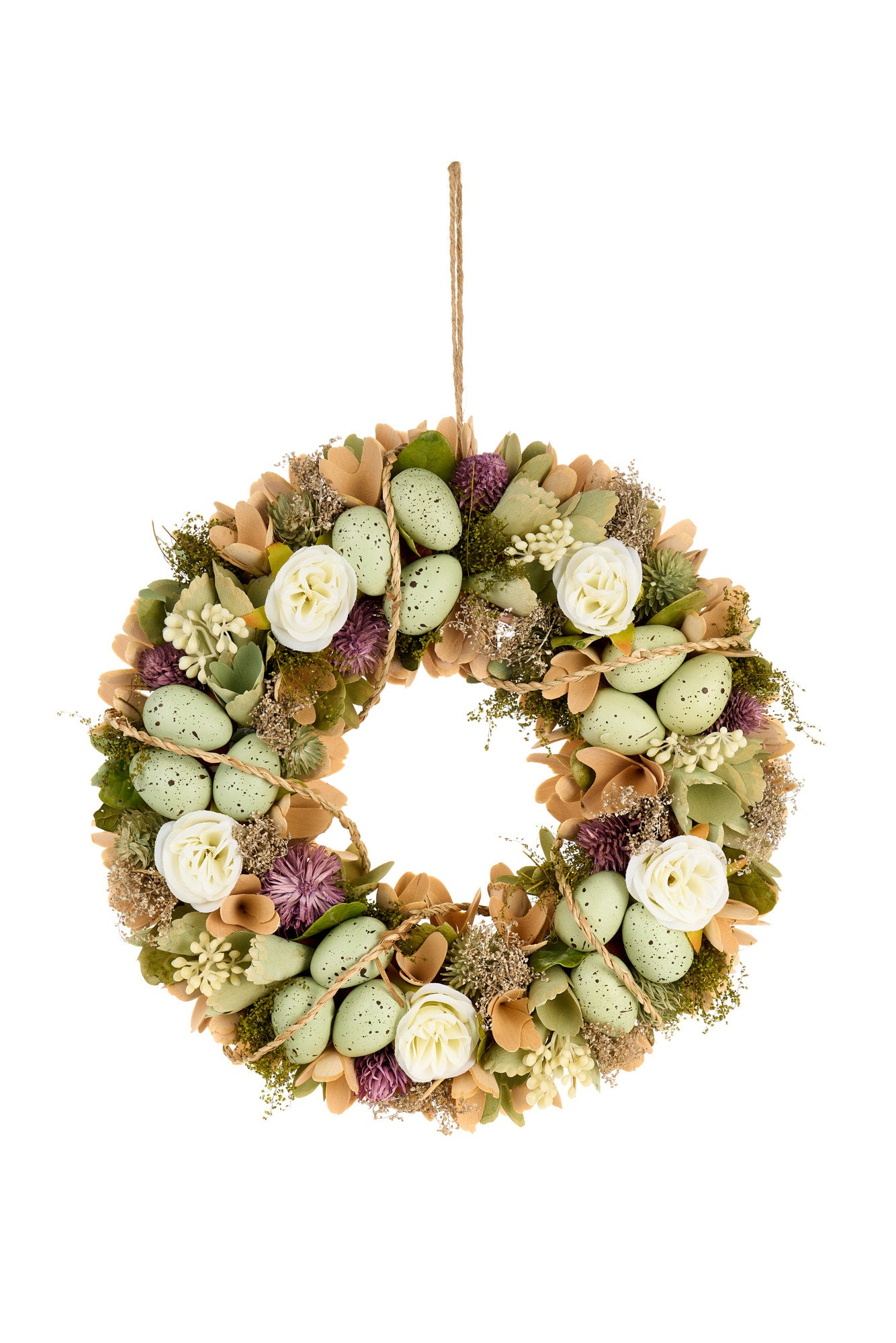 Ghirlanda Pasquale in Legno con Rose e Uova Colorate – Collezione Pepen