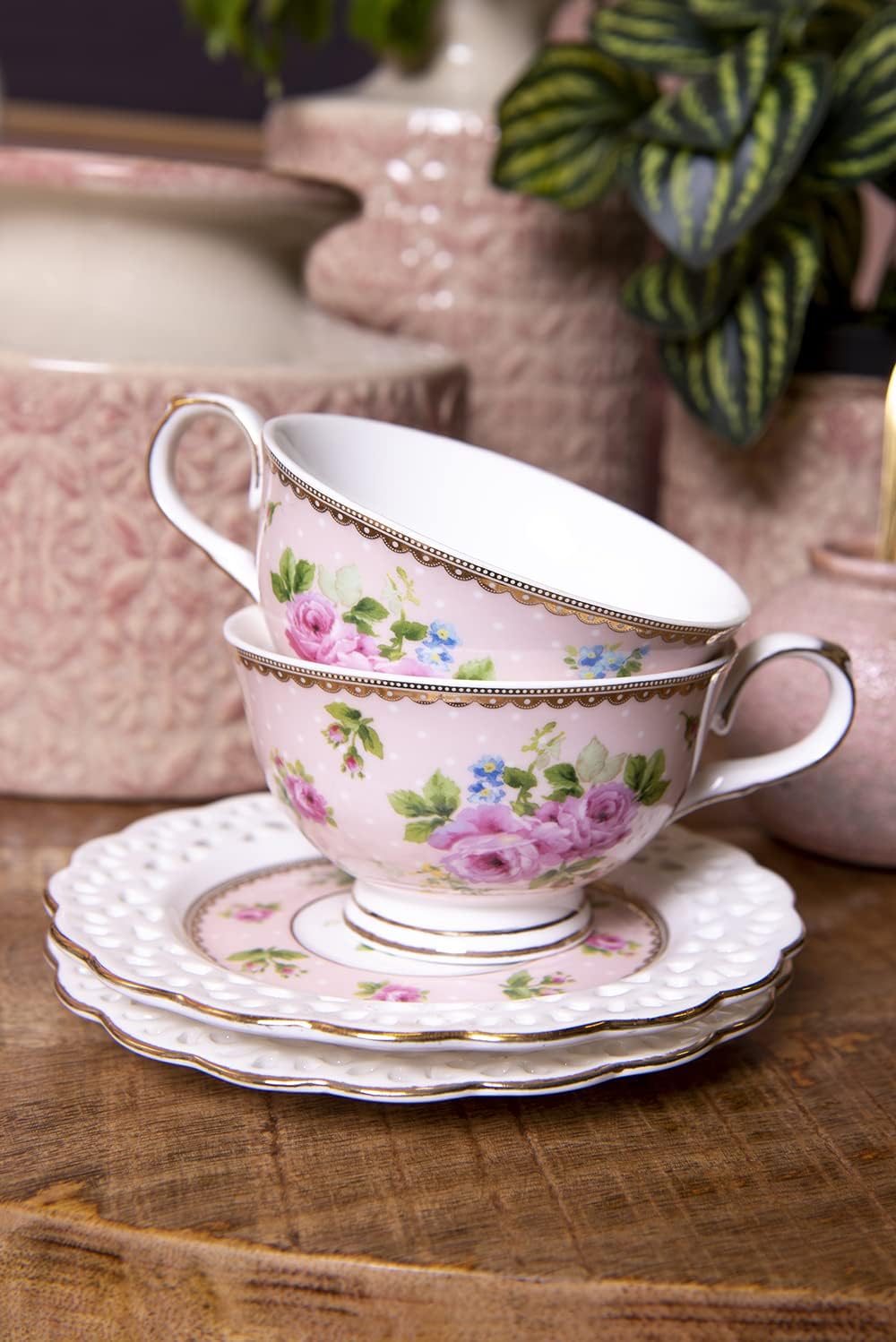 CLAYRE & EEF SET 2 TAZZE DA THE CON PIATTINO CON ROSELLINE E PIATTINO INTAGLIATO