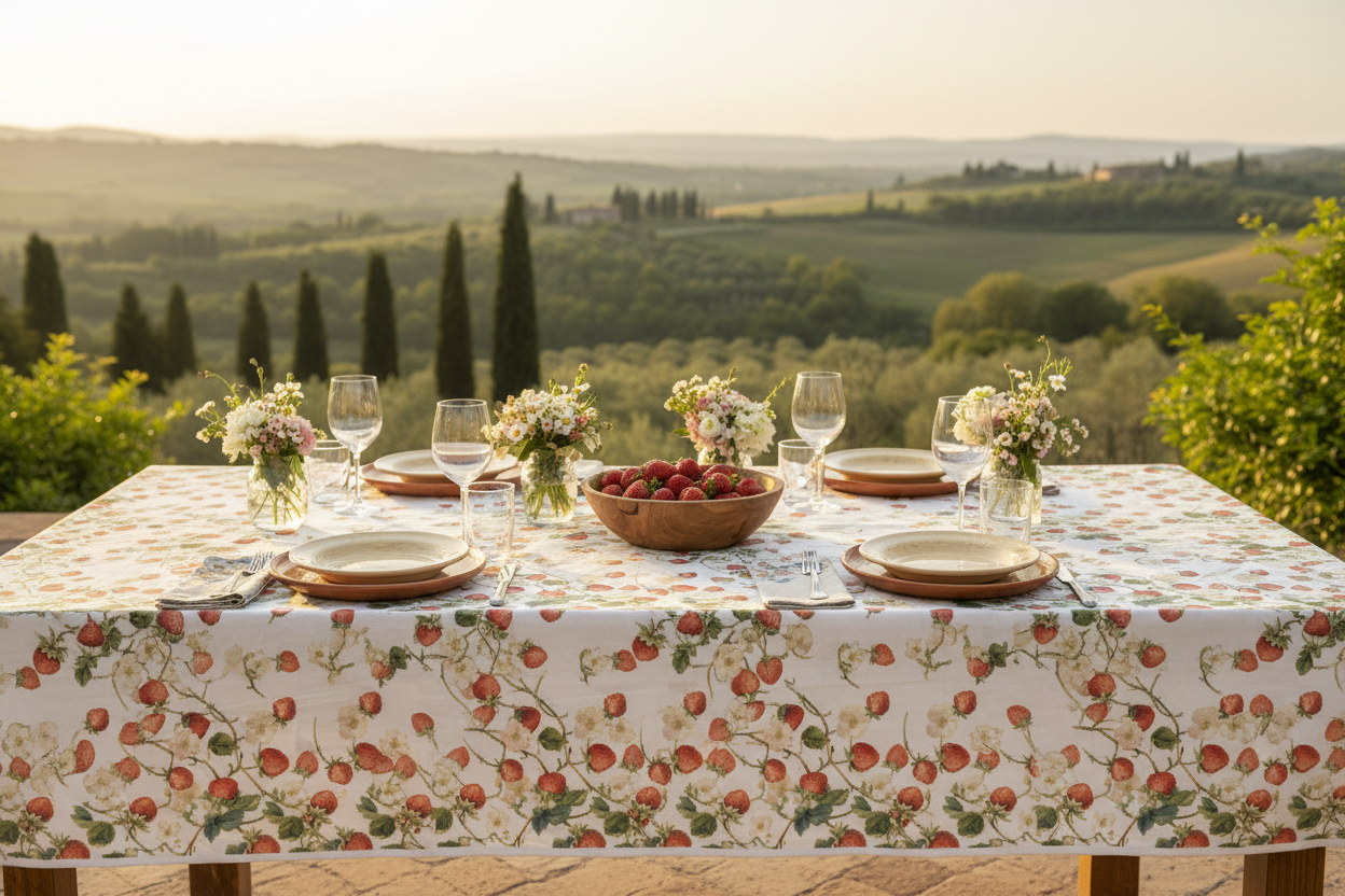 Tessitura di Arconate tovaglia copritavolo piazzata con decoro fragole