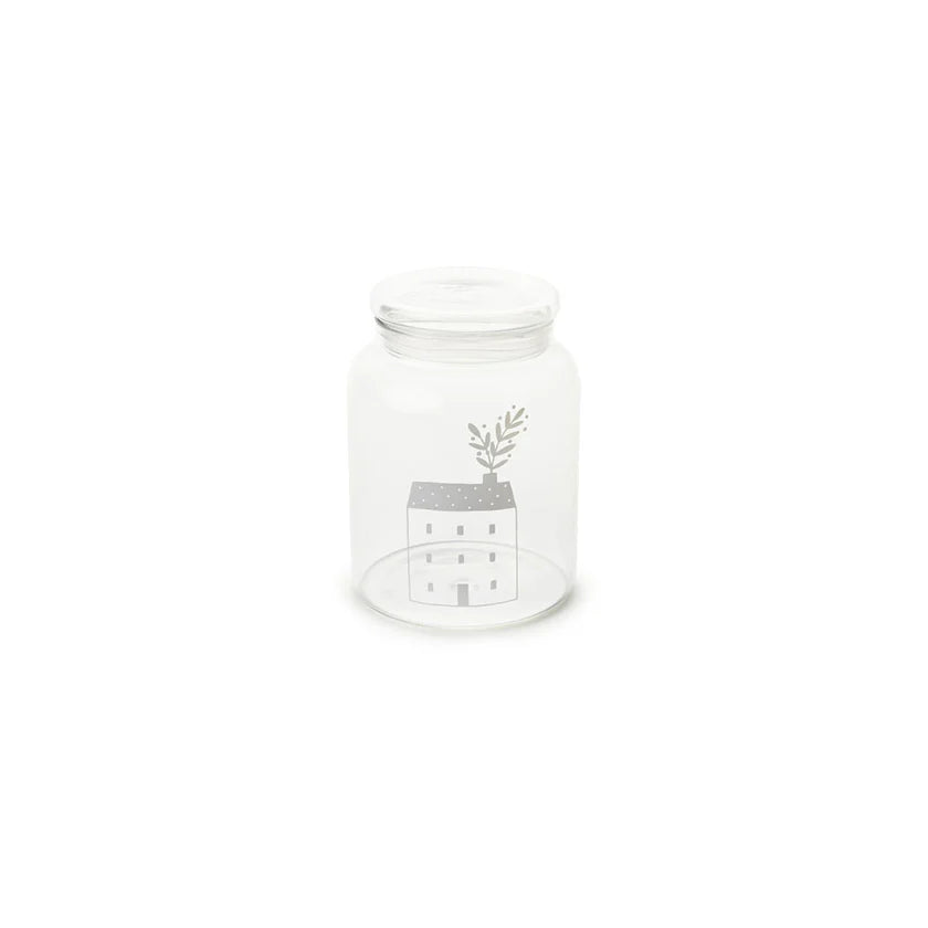 NUVOLE DI STOFFA BARATTOLO IN VETRO BOROSILICATO CON CASA COLLEZIONE MY HOME