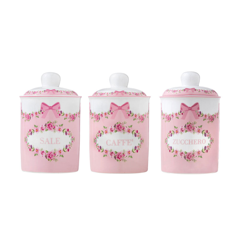 L'Arte di Nacchi tris di barattoli in porcellana con fiocchi
