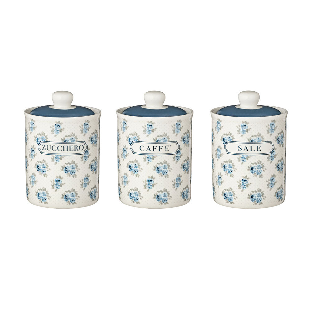 L'Arte di Nacchi tris di barattoli in porcellana azzurri