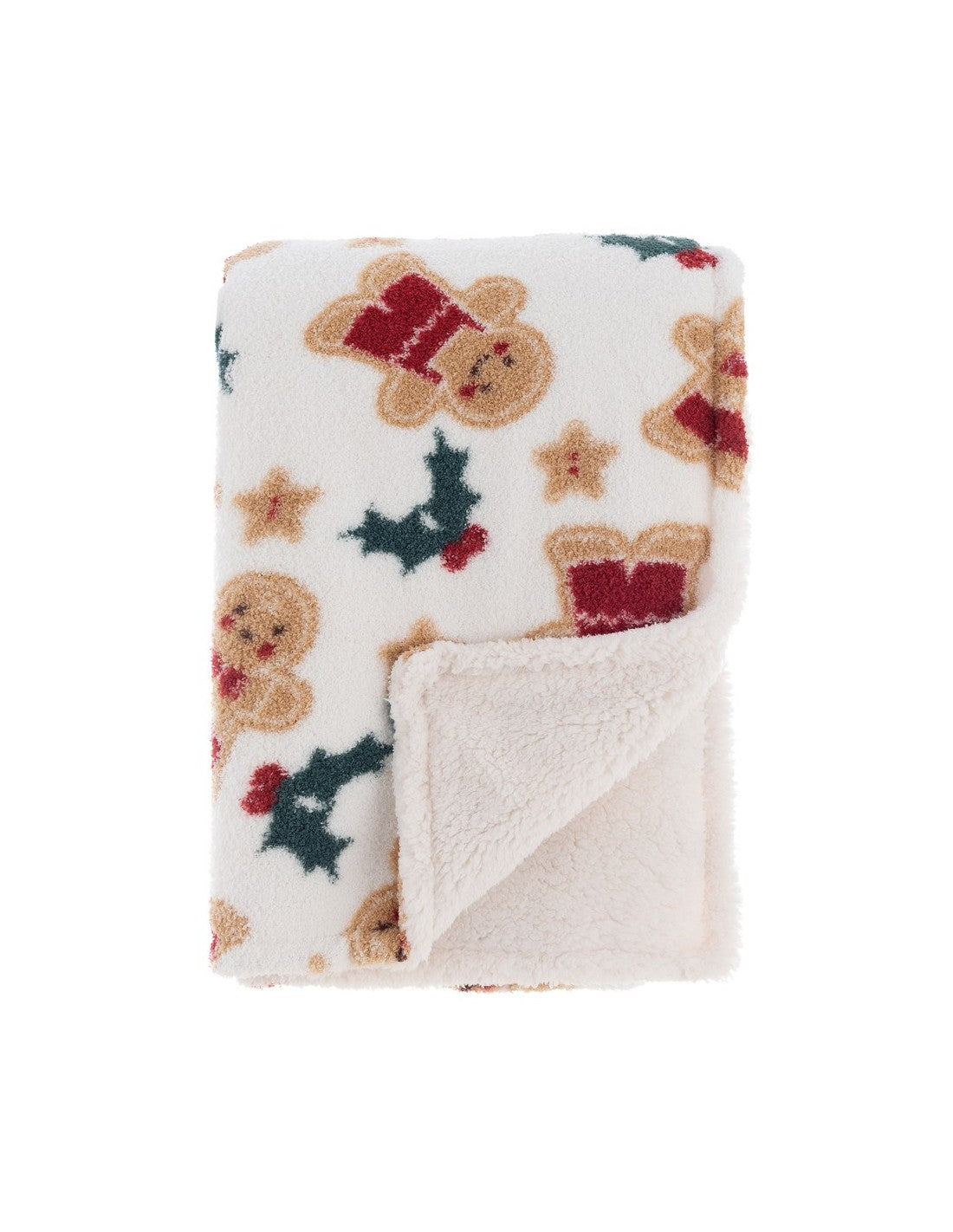 Blanc Mariclo plaid sherpa stampato biscottini pan di zenzero collezione Morbido Essenziale