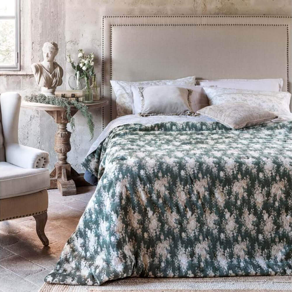 Blanc Mariclo' Parure Trapunta Matrimoniale floreale collezione Notte di Velluto completa di copriguanciali
