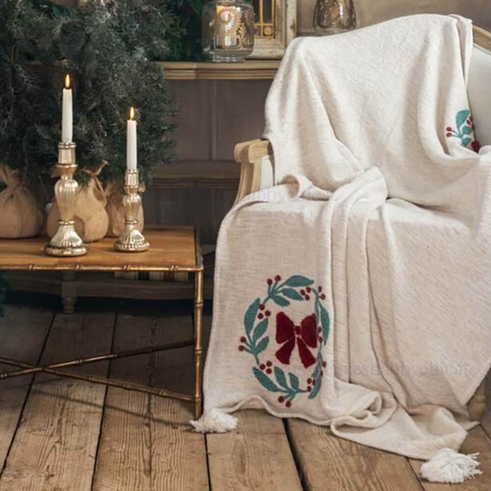 Blanc Mariclò Plaid Copritutto Ghirlanda Fiocco Festivity