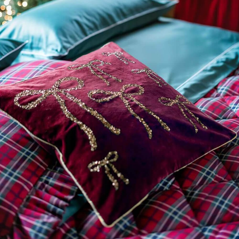 Blanc Mariclò Cuscino Velluto Nastro d’Oro Bordeaux