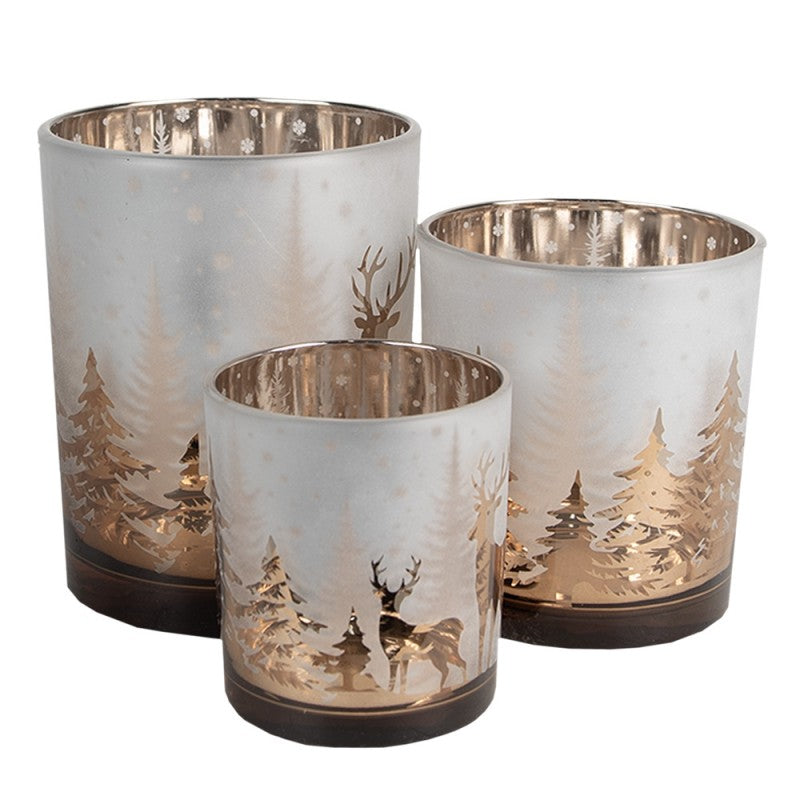 Clayre & eef set di 3 portacandela in vetro con cervi