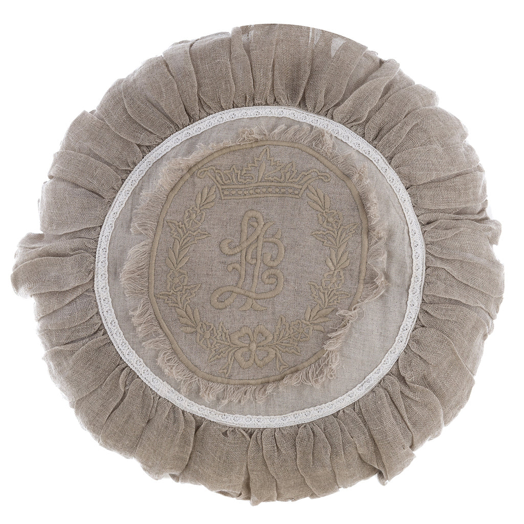 Blanc Mariclo' Cuscino tondo ricamato tortora Ø 45 cm