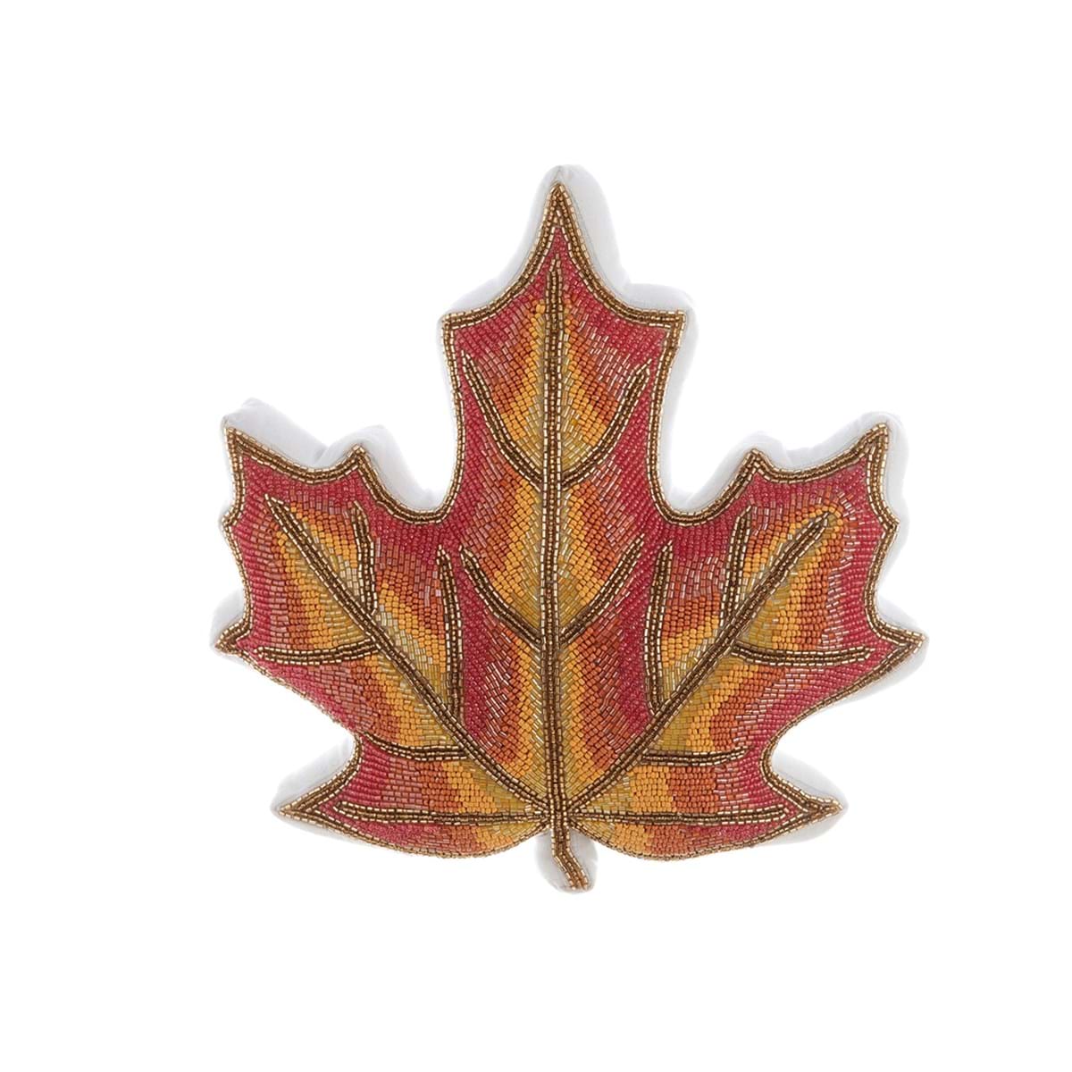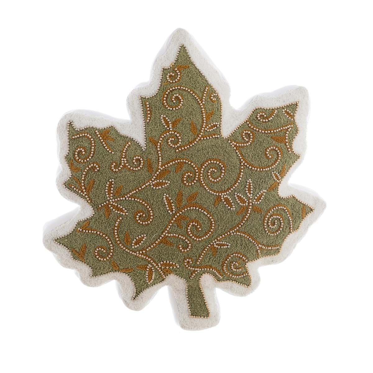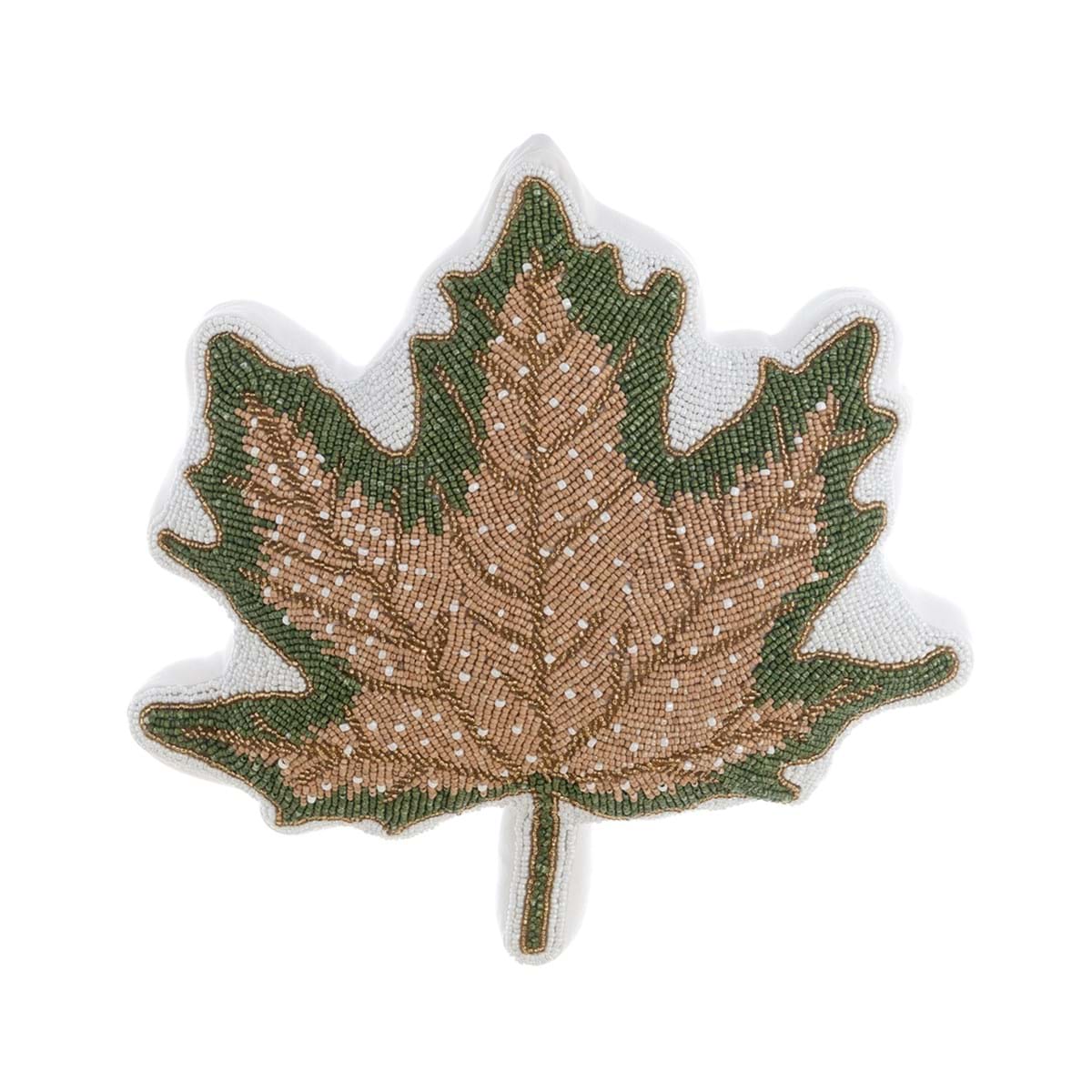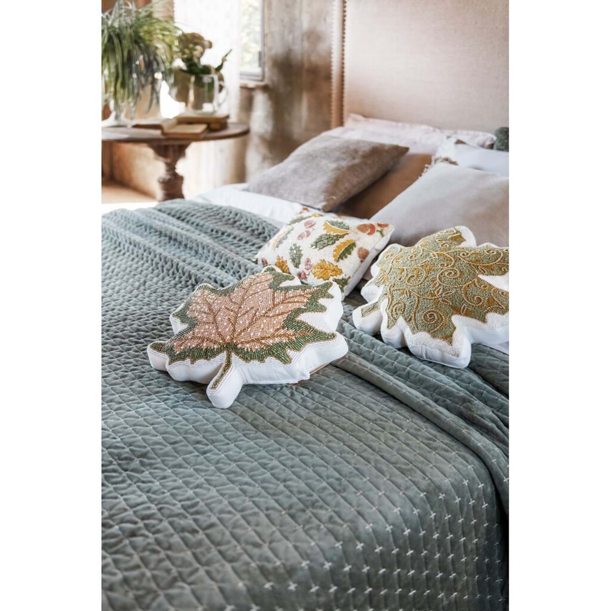 Blanc Mariclò cuscino foglia verde ricamato con perline