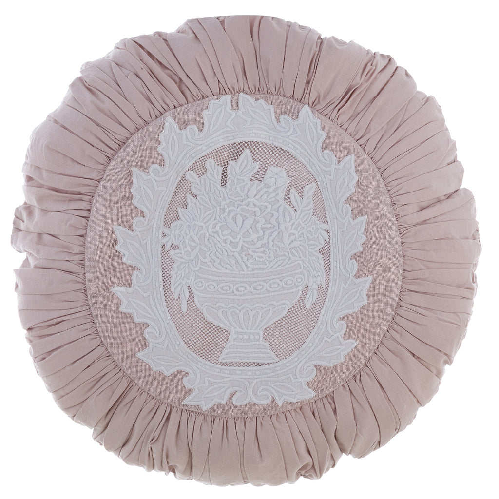 Blanc Mariclo' Cuscino tondo ricamato rosa e bianco con ricami e frill