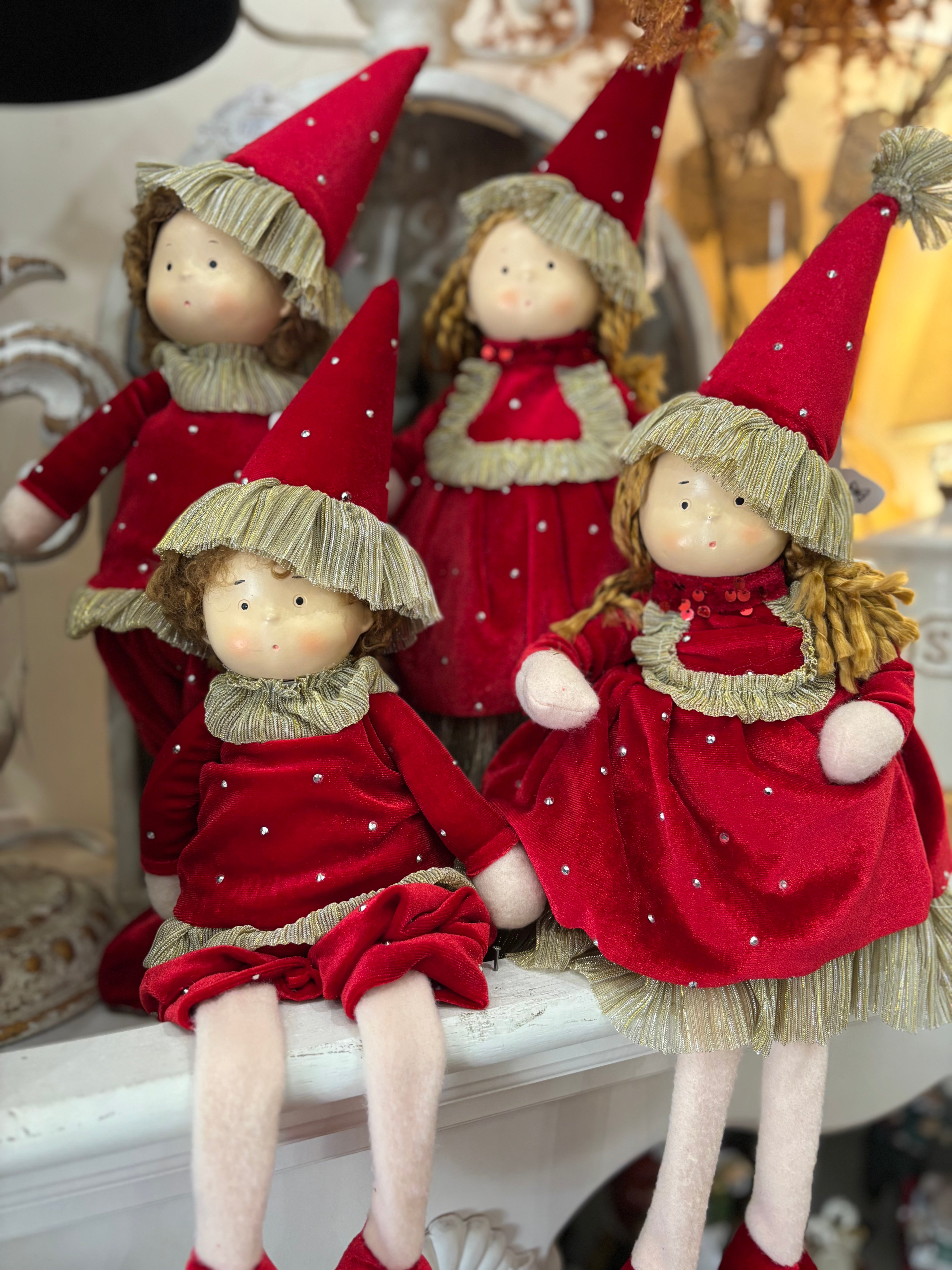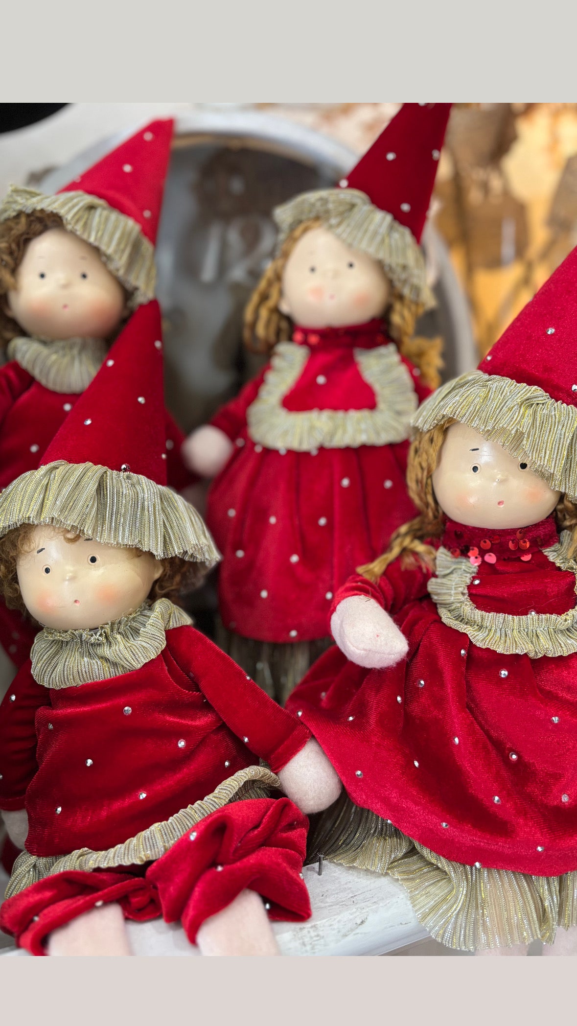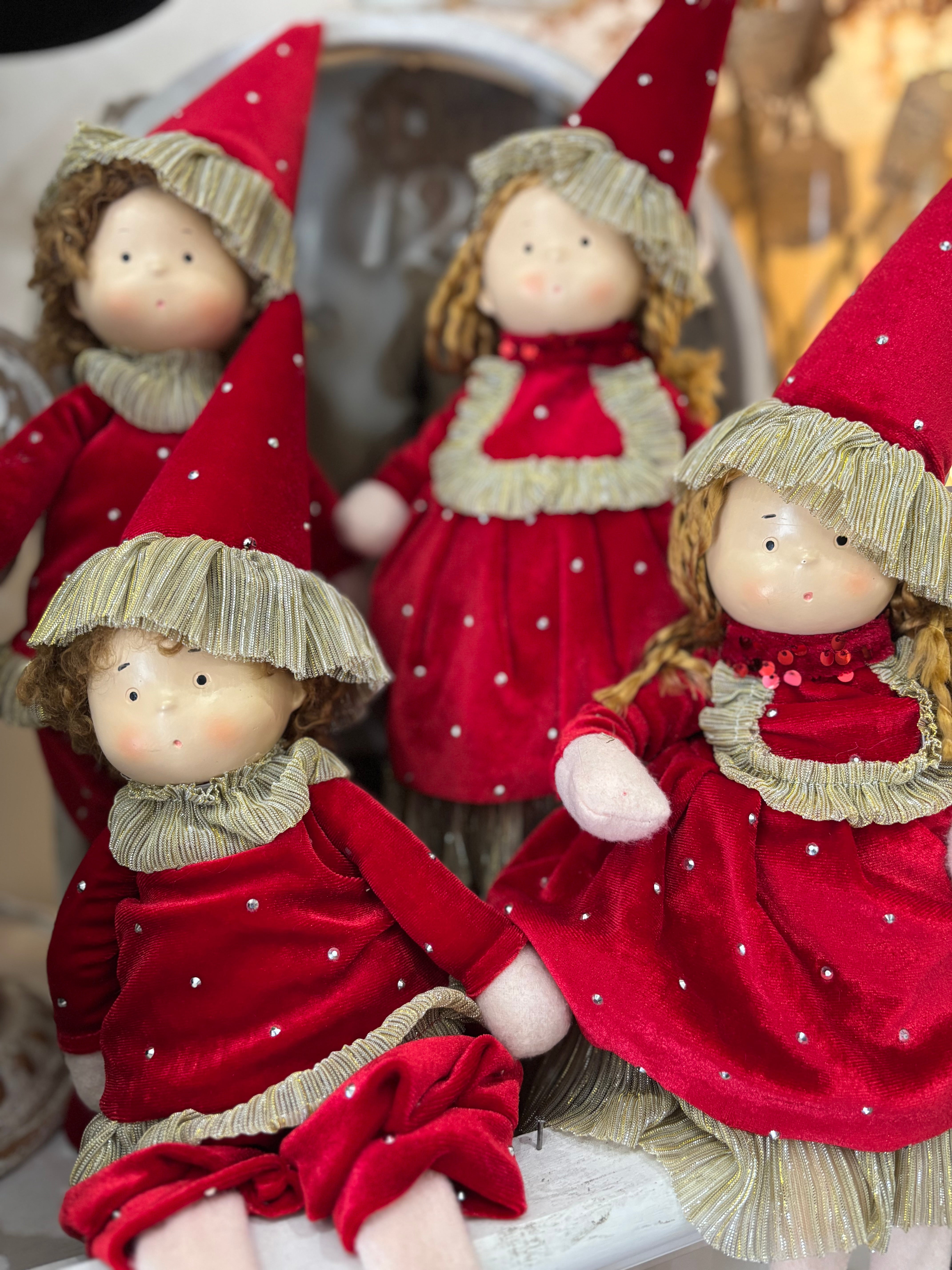 Fiori di lena coppia di bimbi con abito rosso h 46 cm