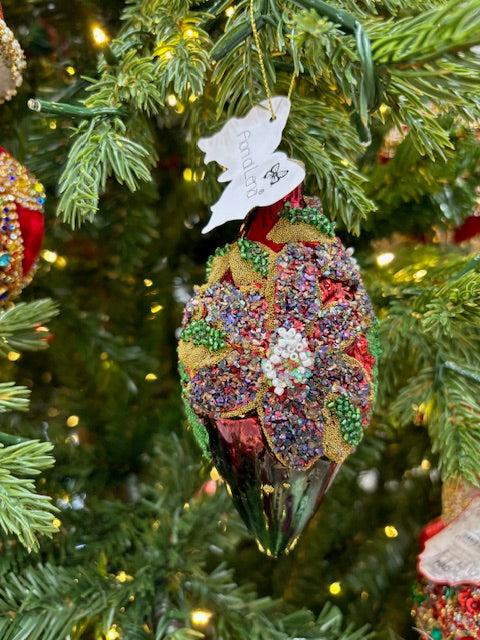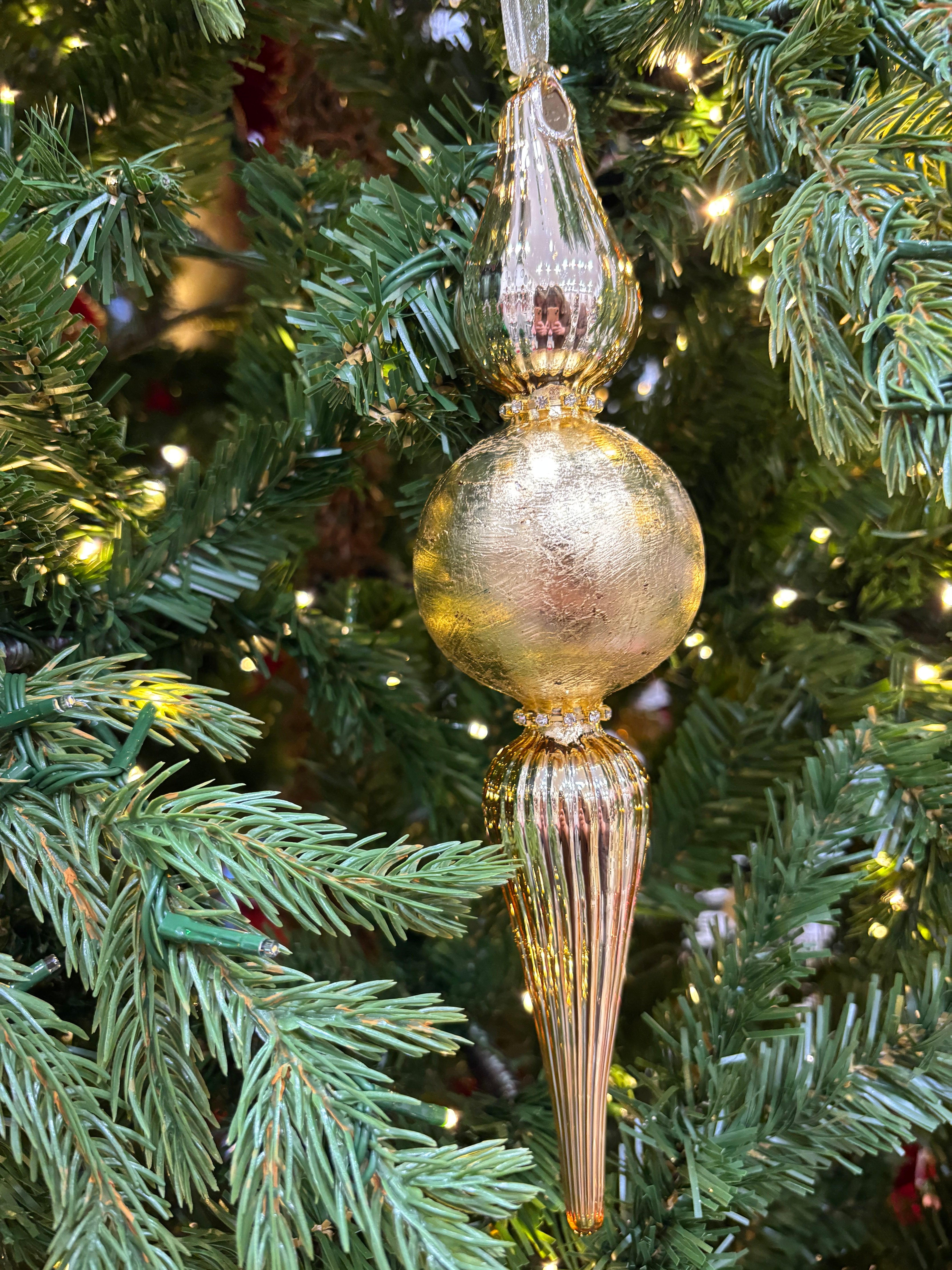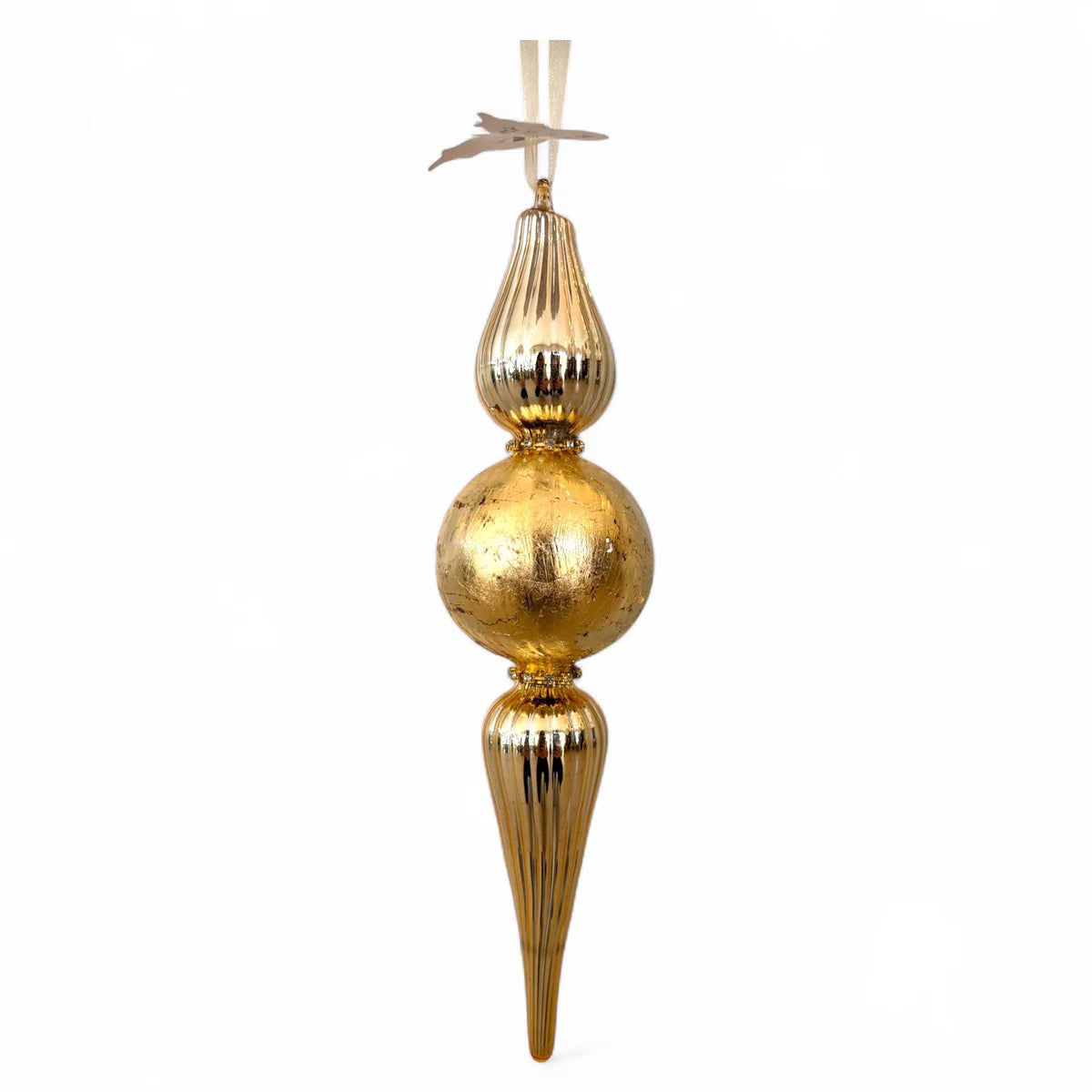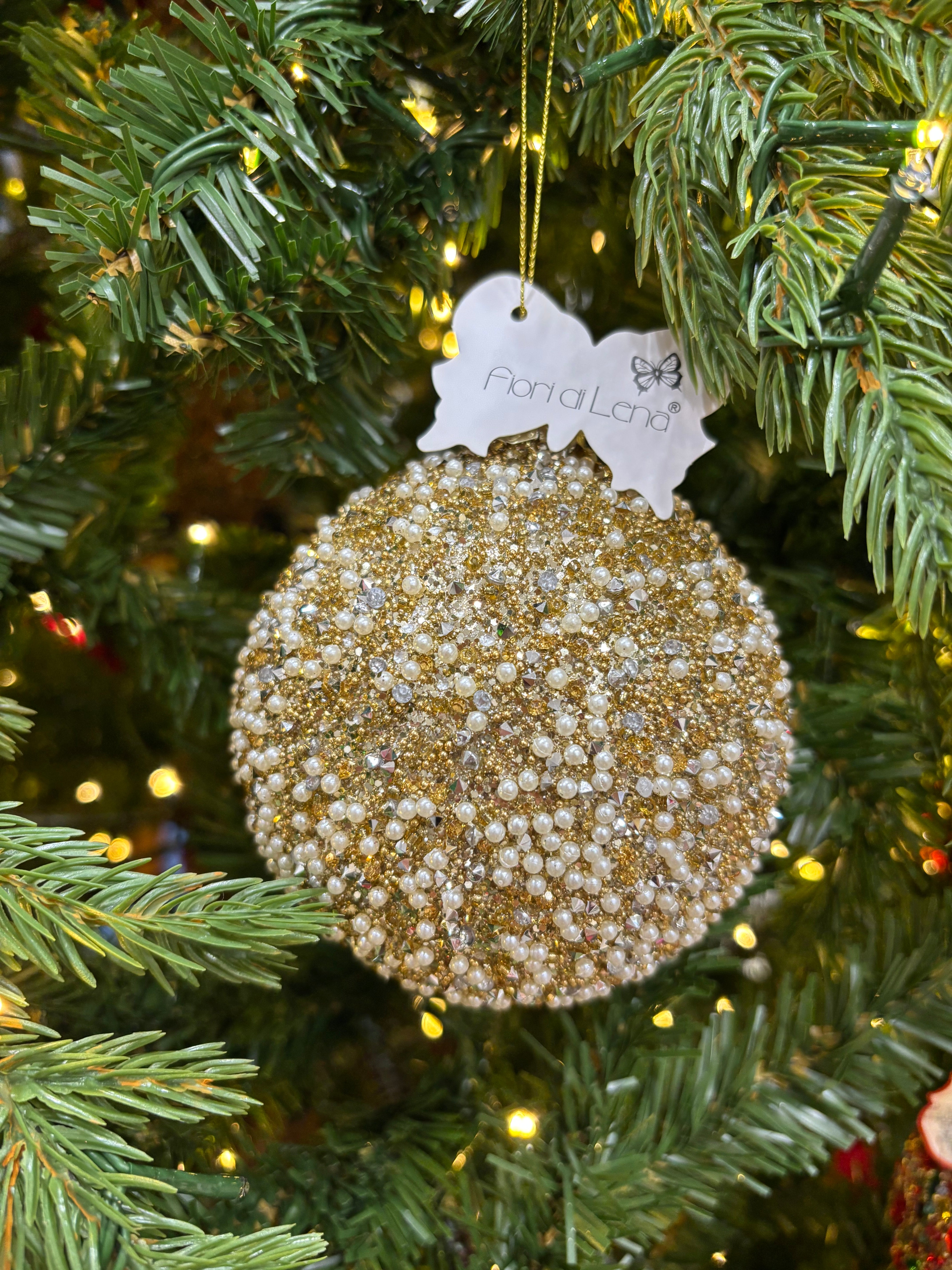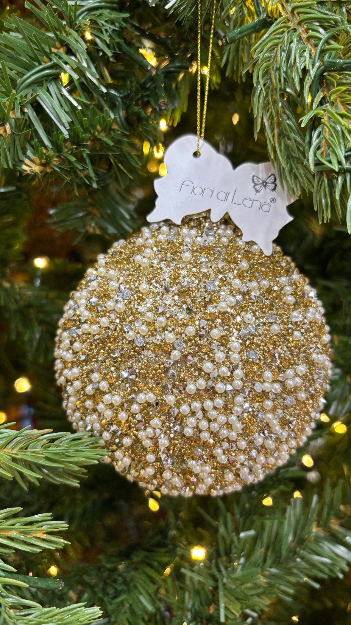 Fiori di lena addobbo puntale in vetro con foglia oro