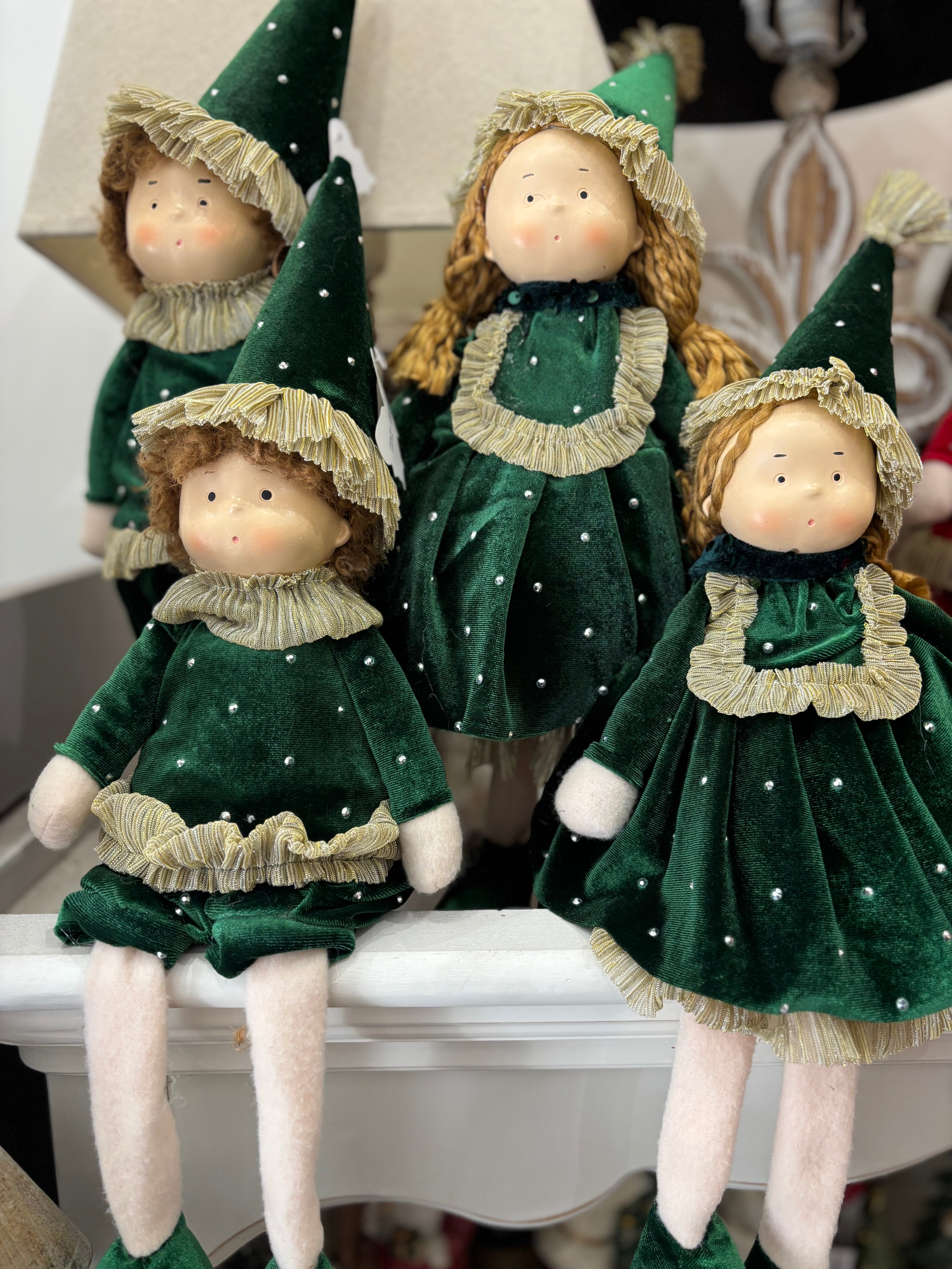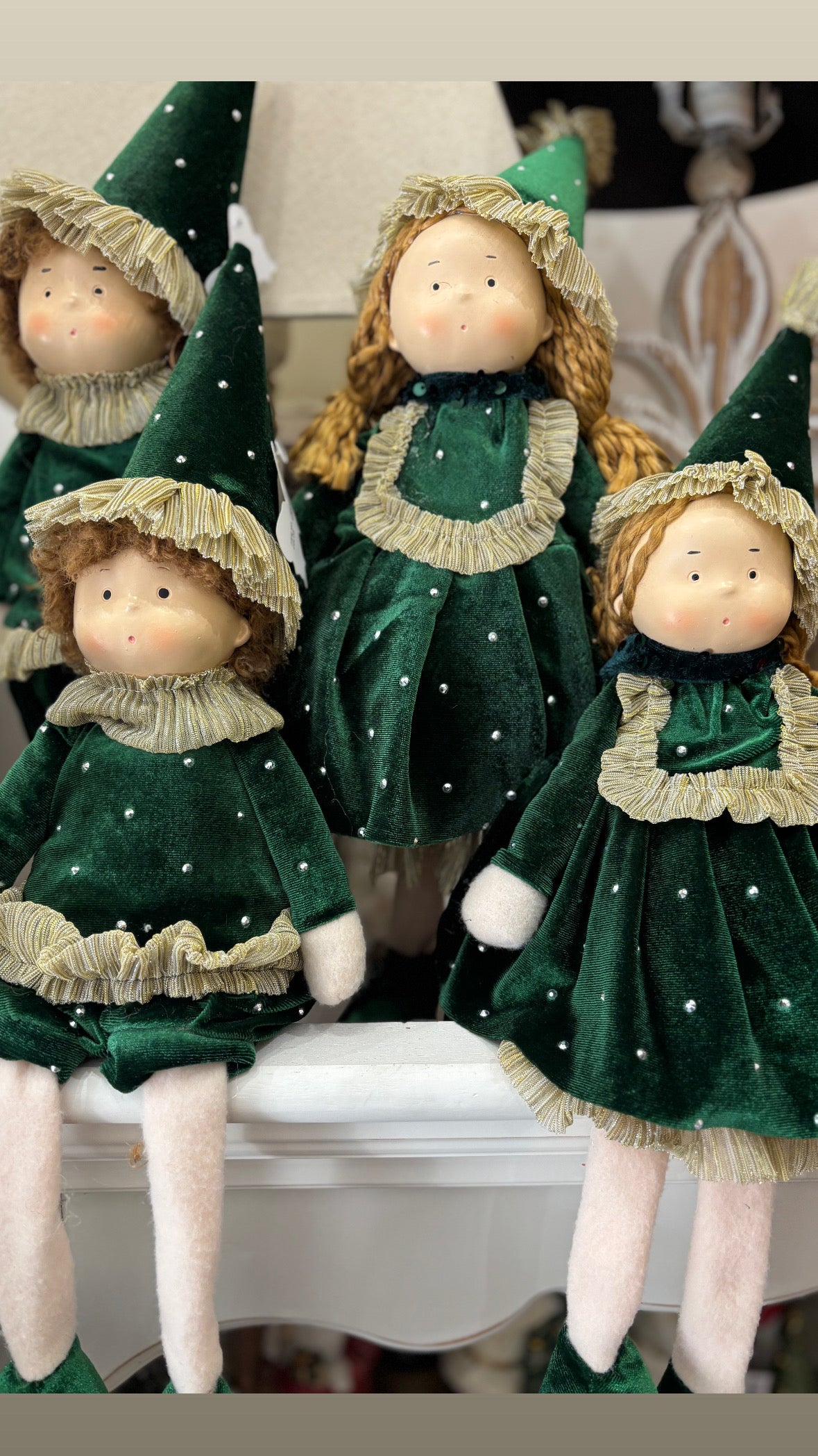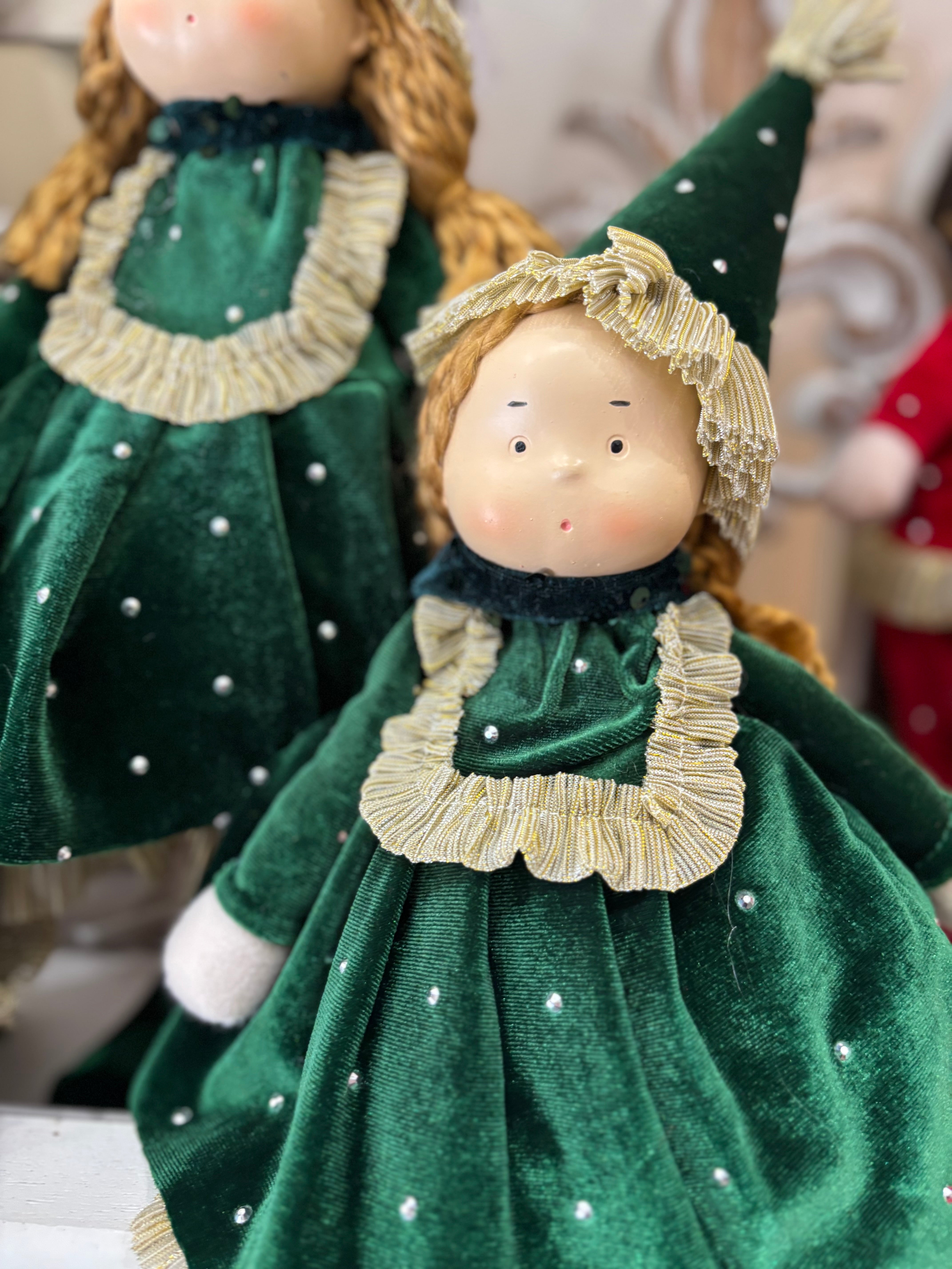 Fiori di lena coppia di bimbi con abito verde h 46 cm