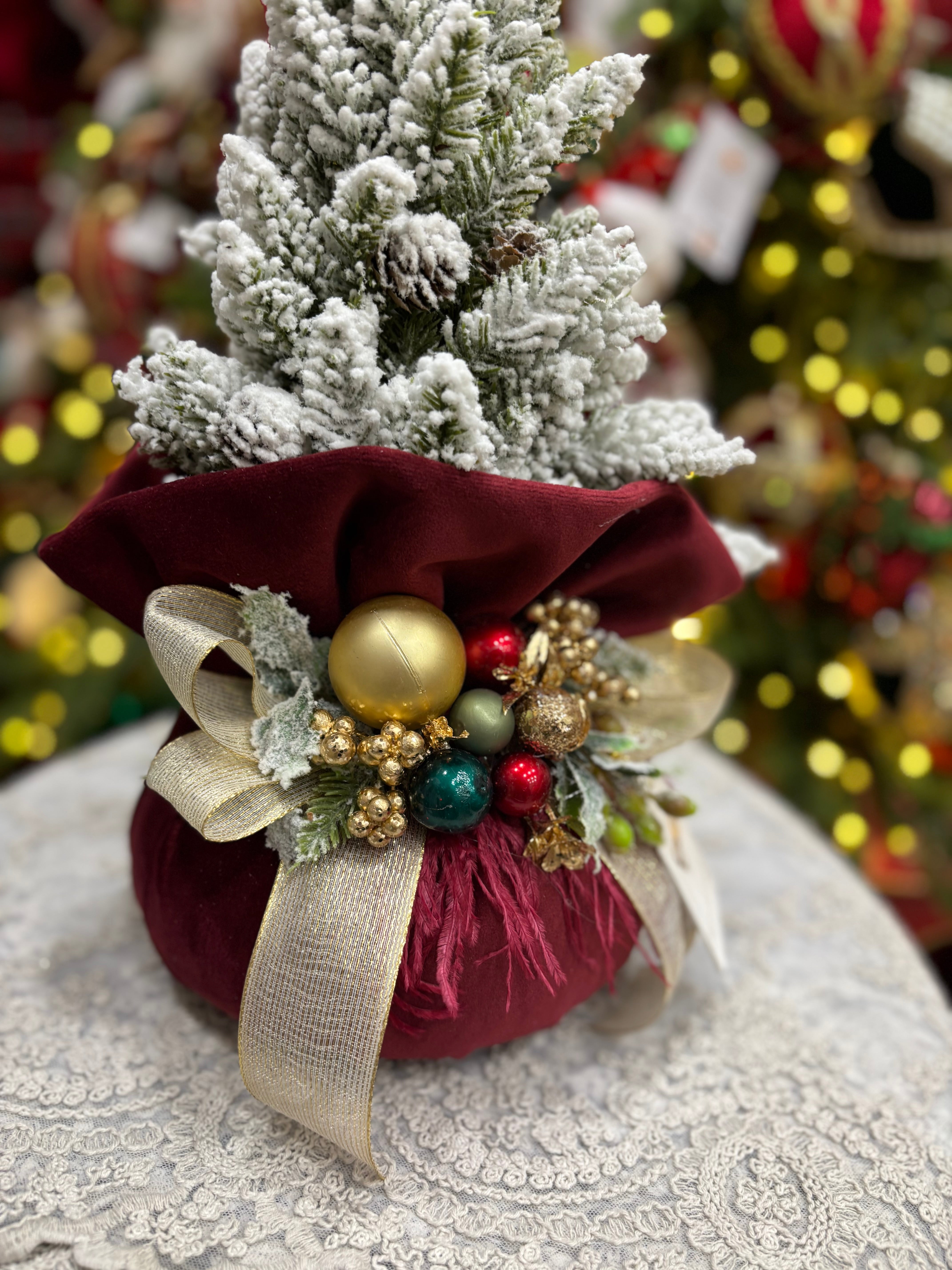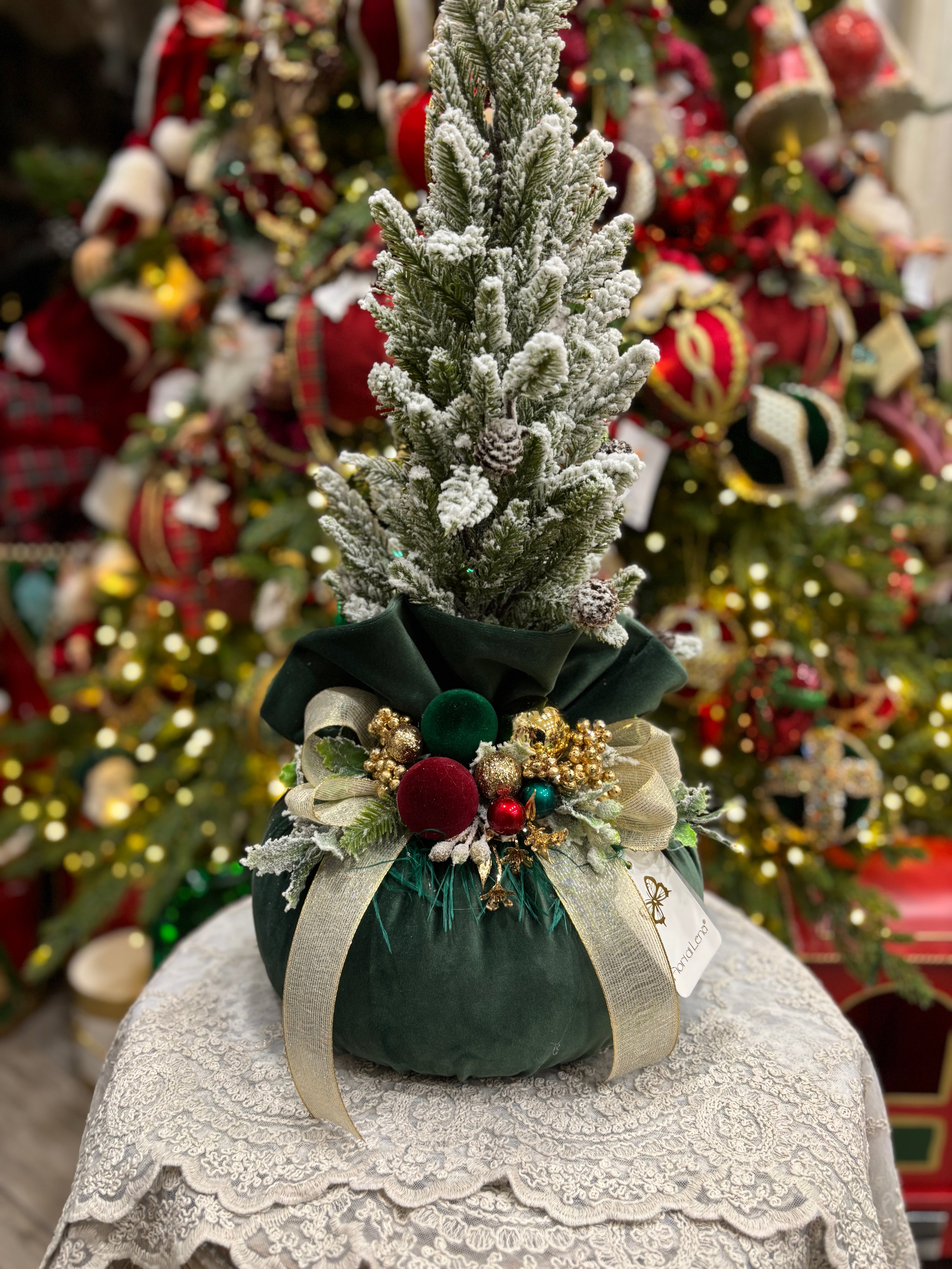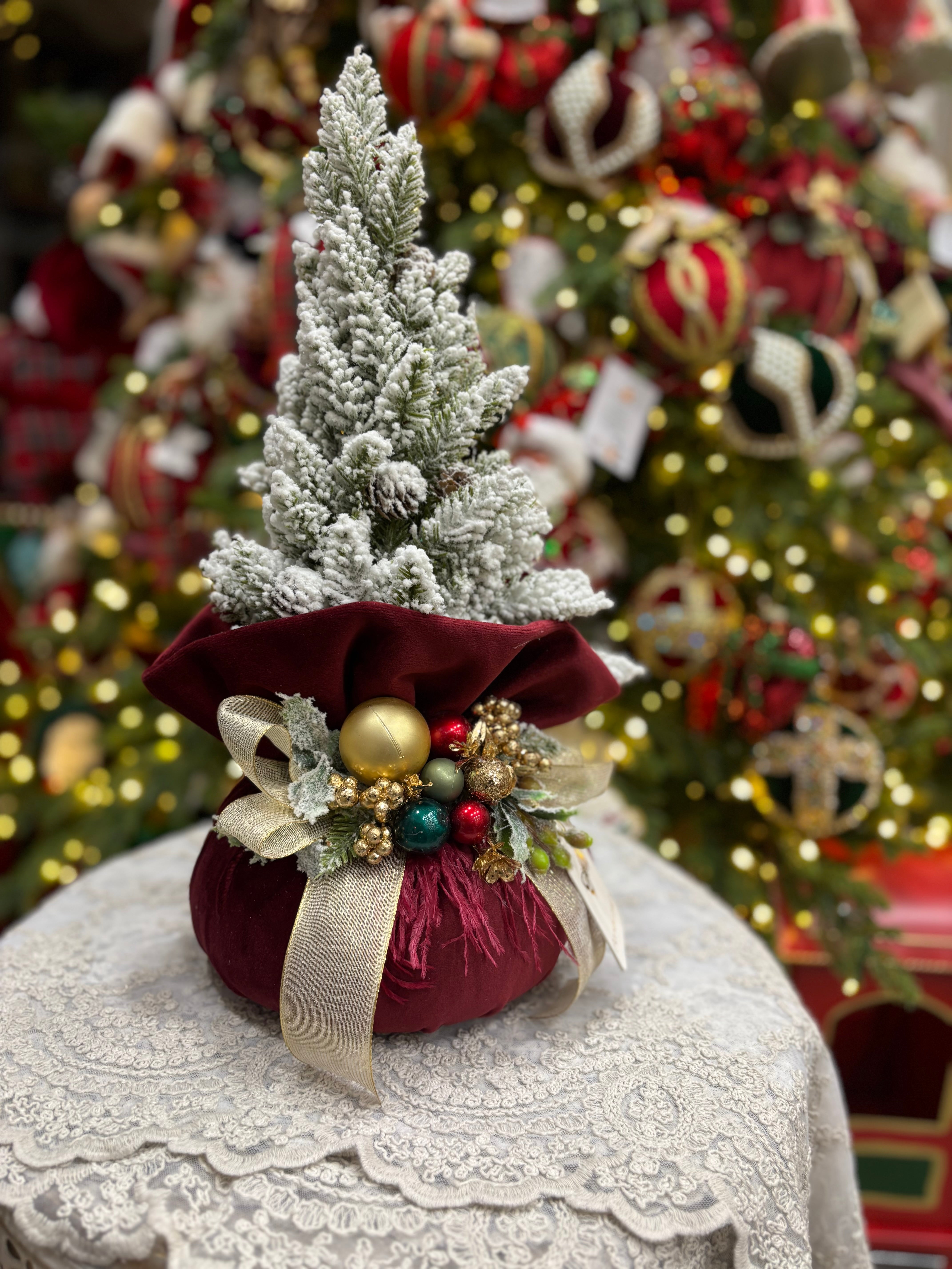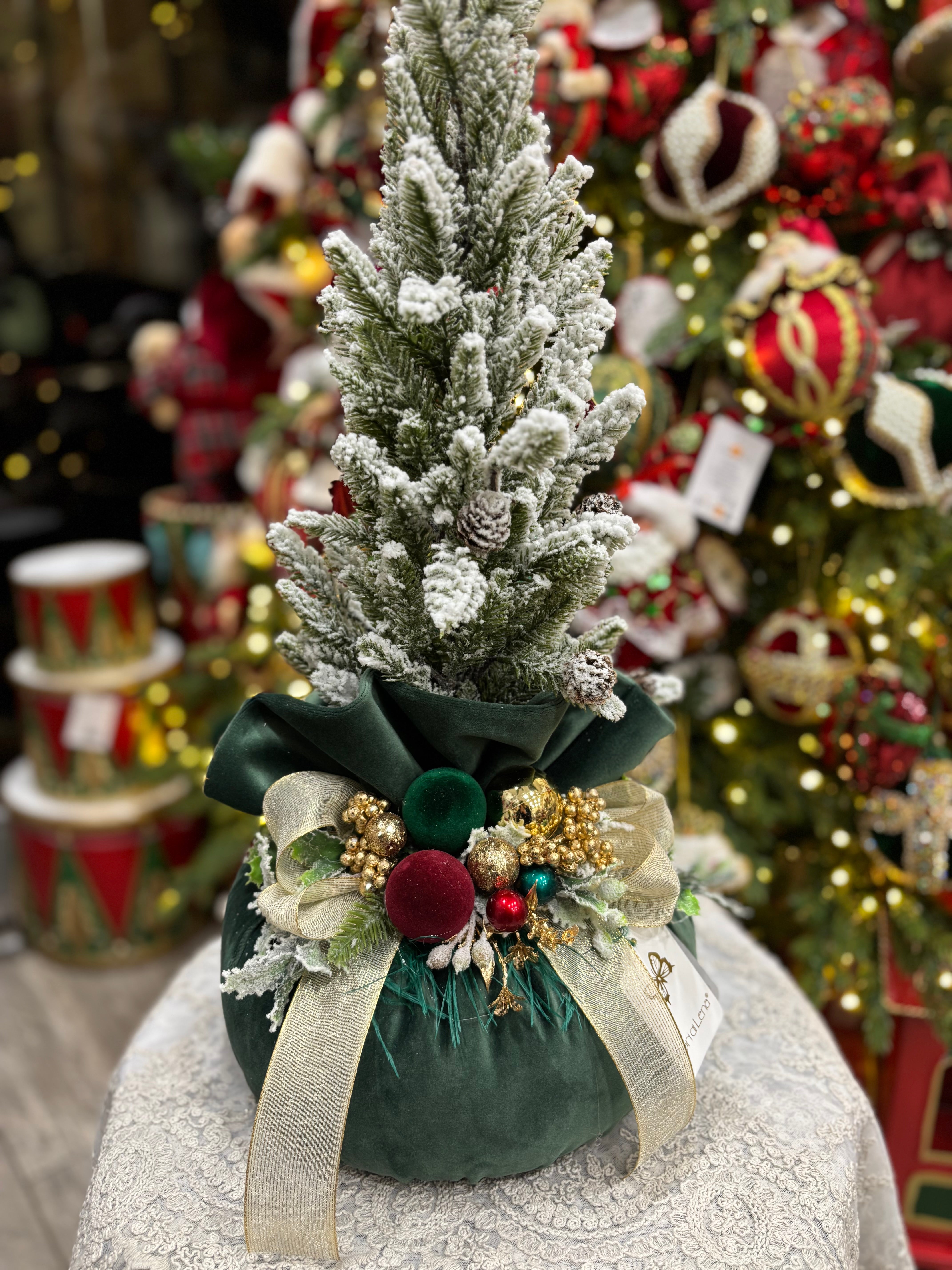 Fiori di lena Alberello con base in velluto e decorazioni natalizie h 45 cm