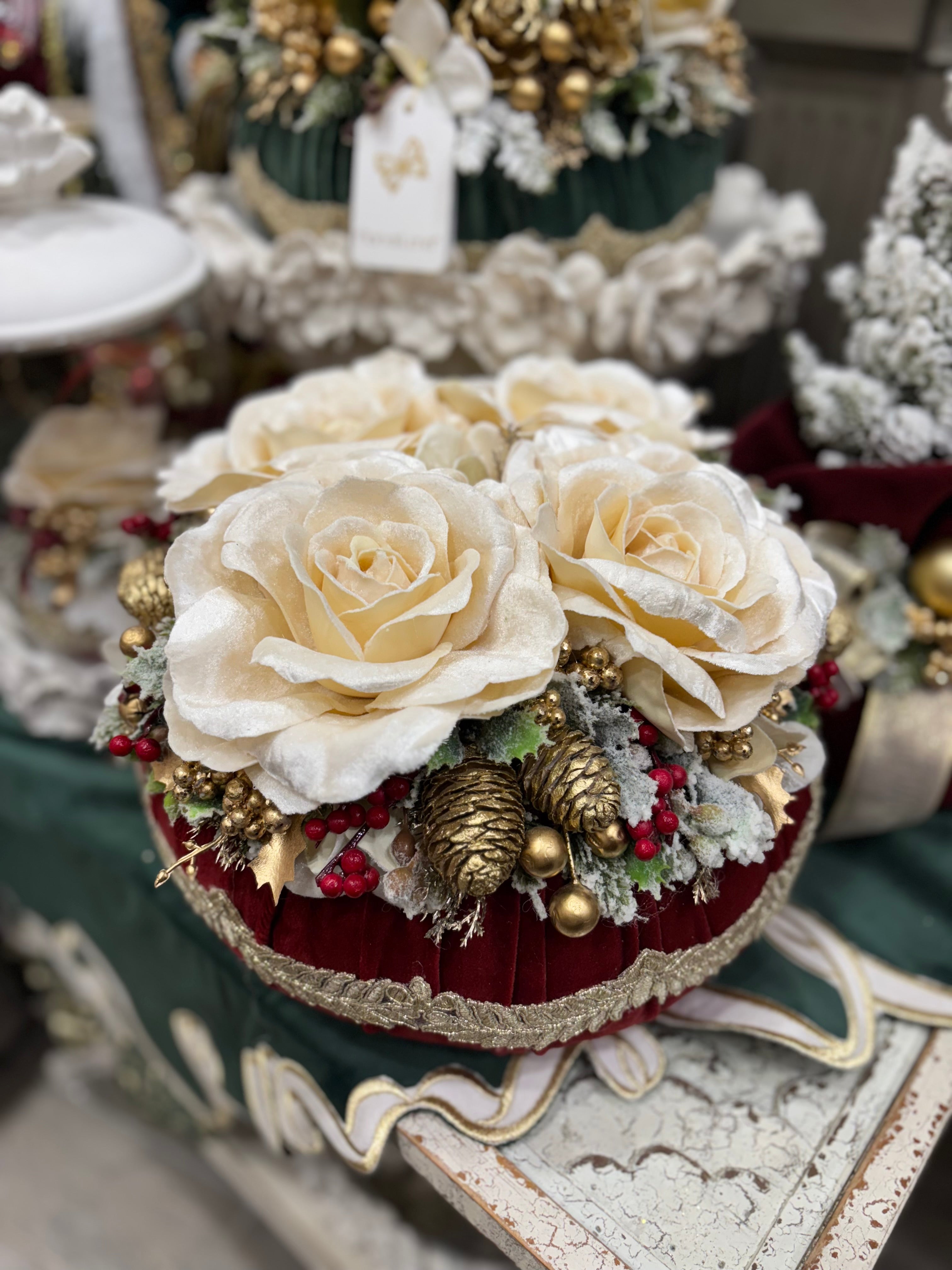 Fiori di lena Pouf profumato rosso tiziano con 4 rose Linea Dono Prezioso