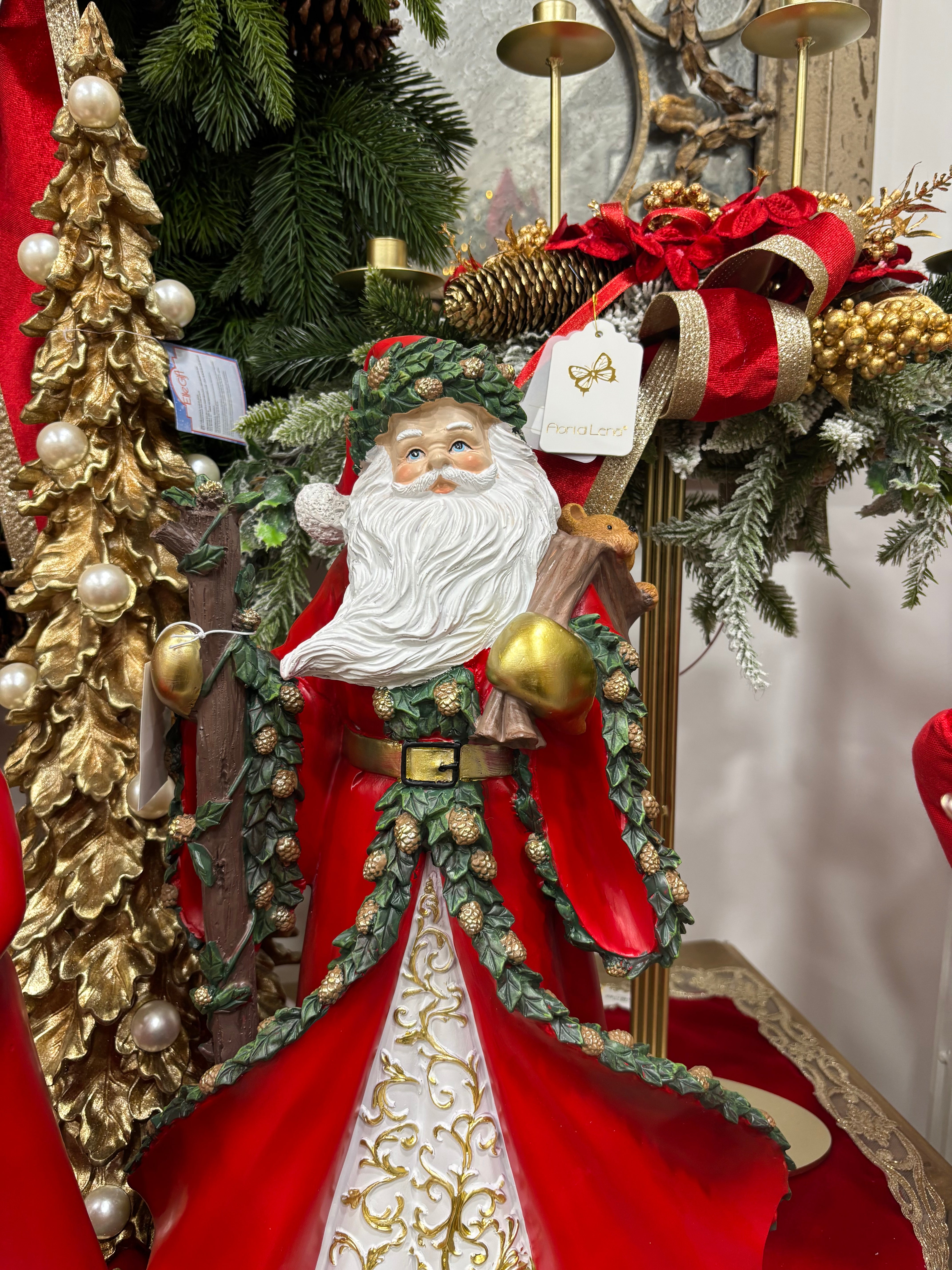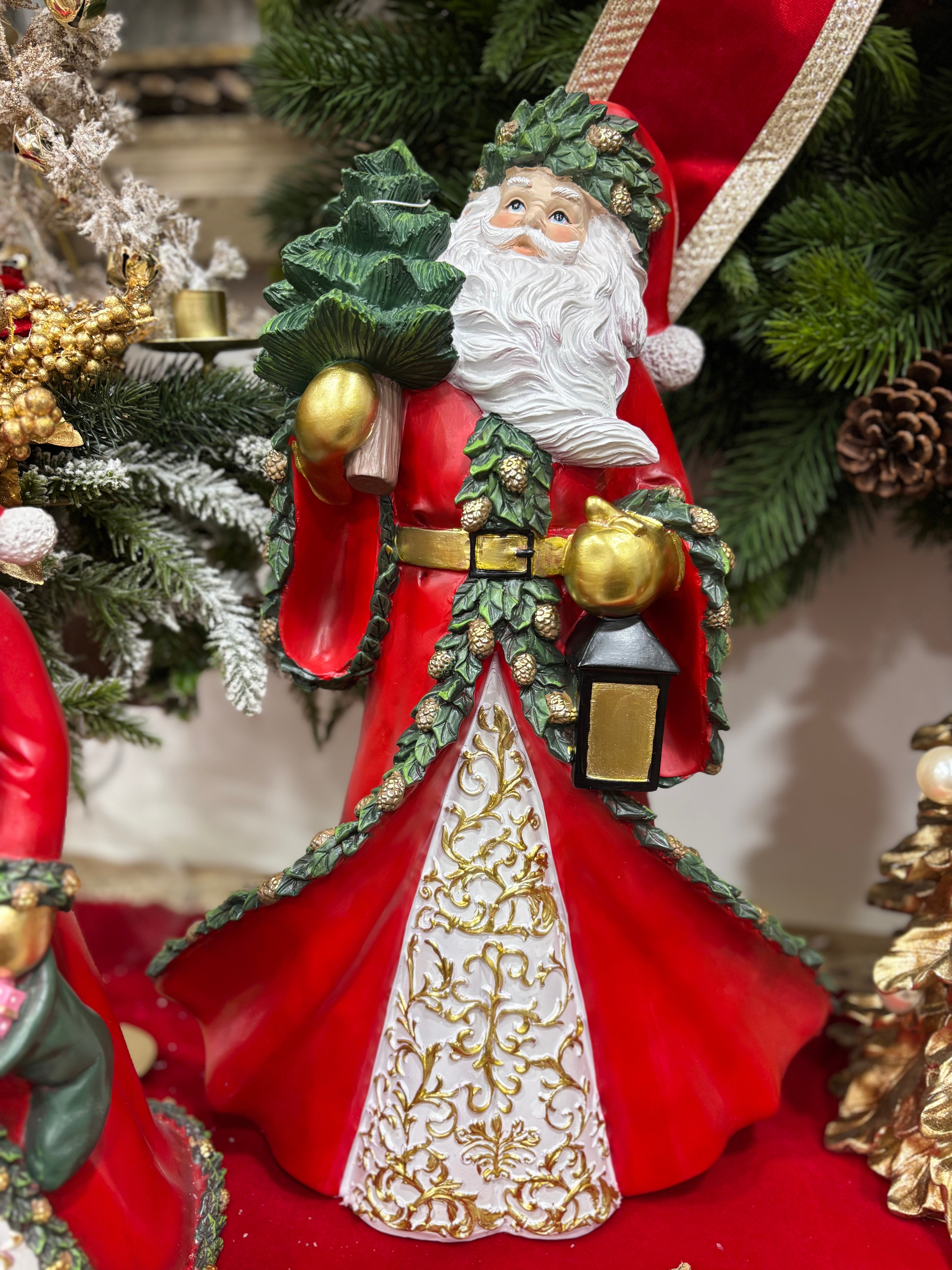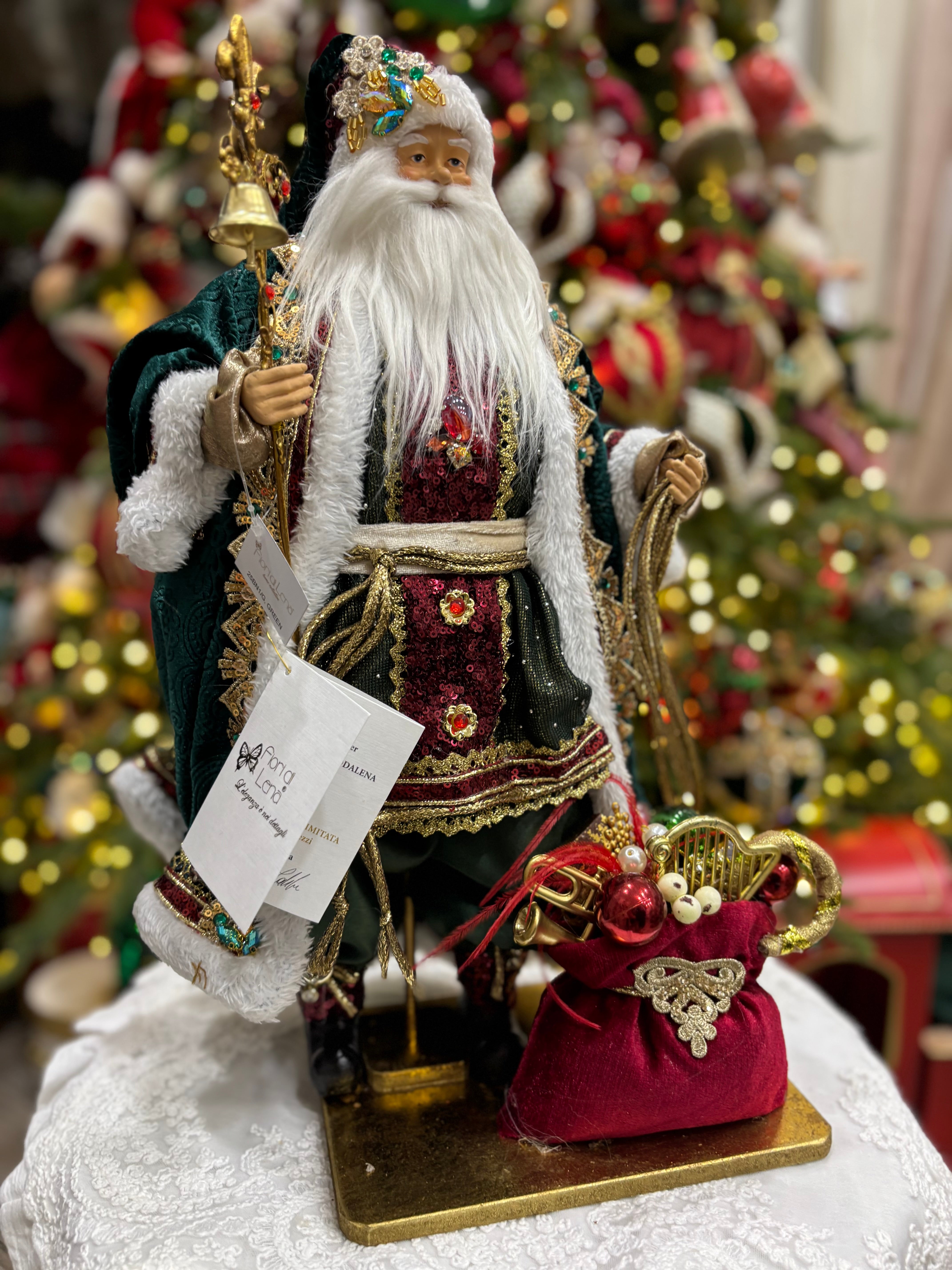 Fiori di lena Babbo Natale in resina con sacco 47 cm
