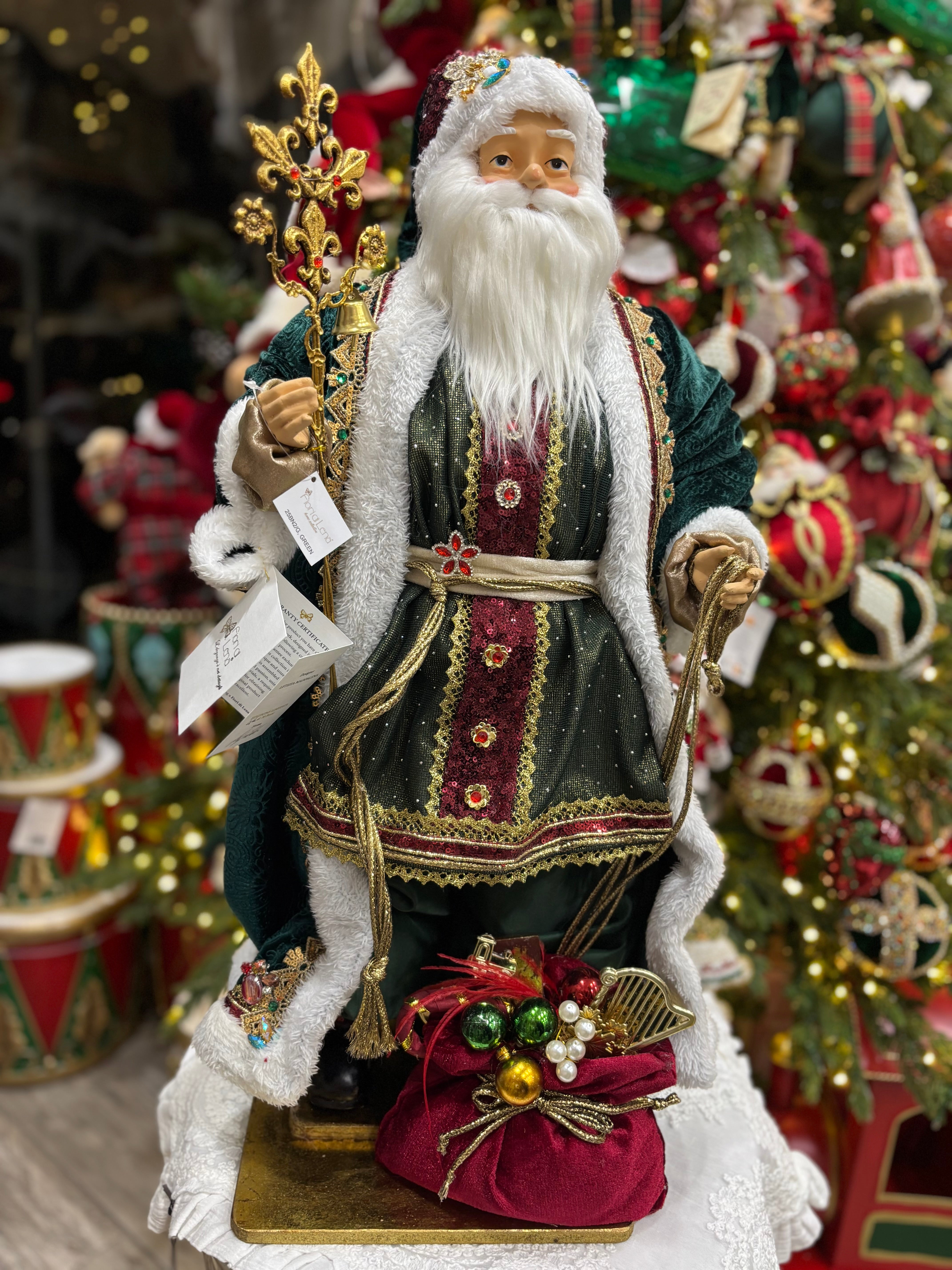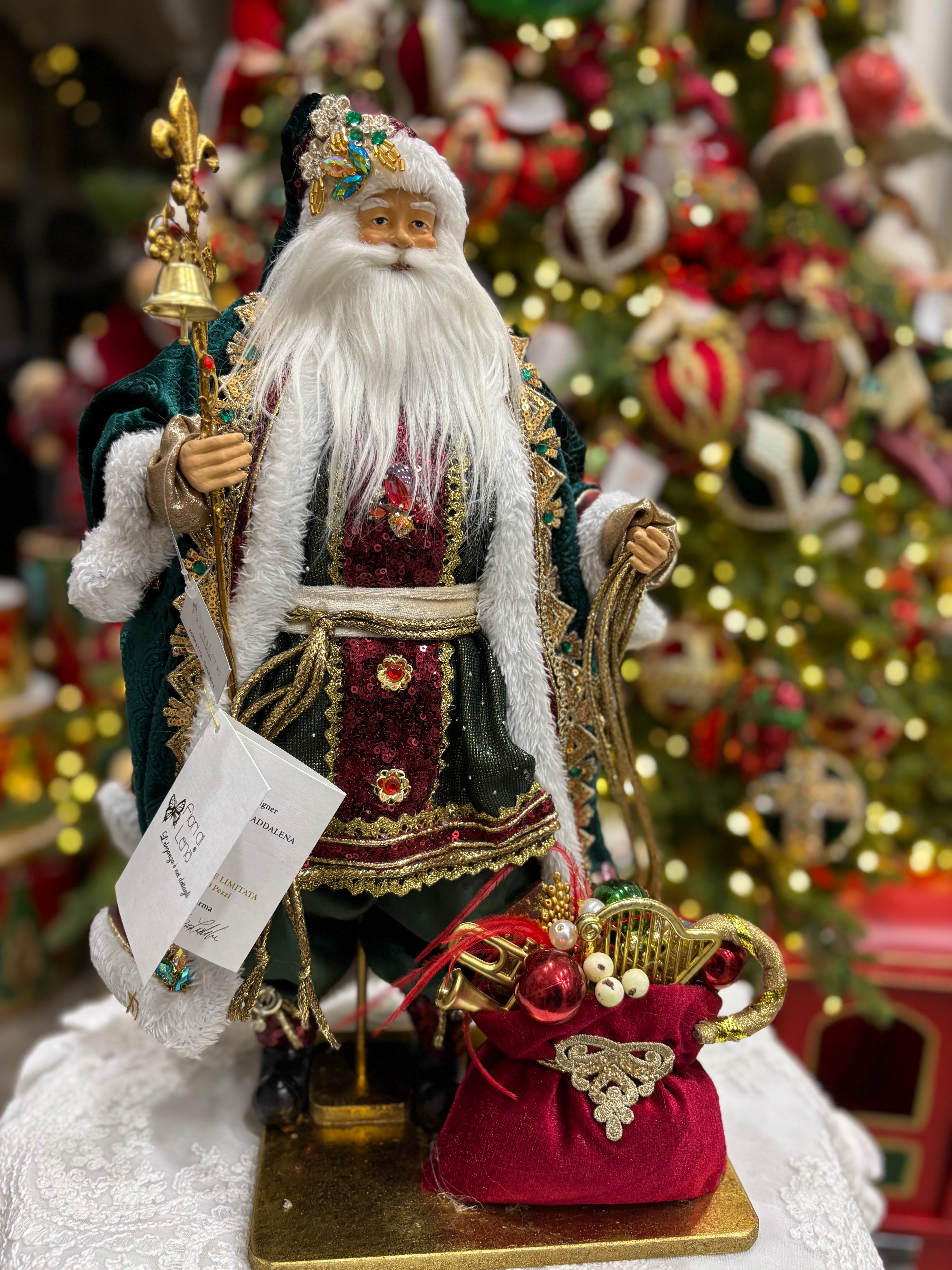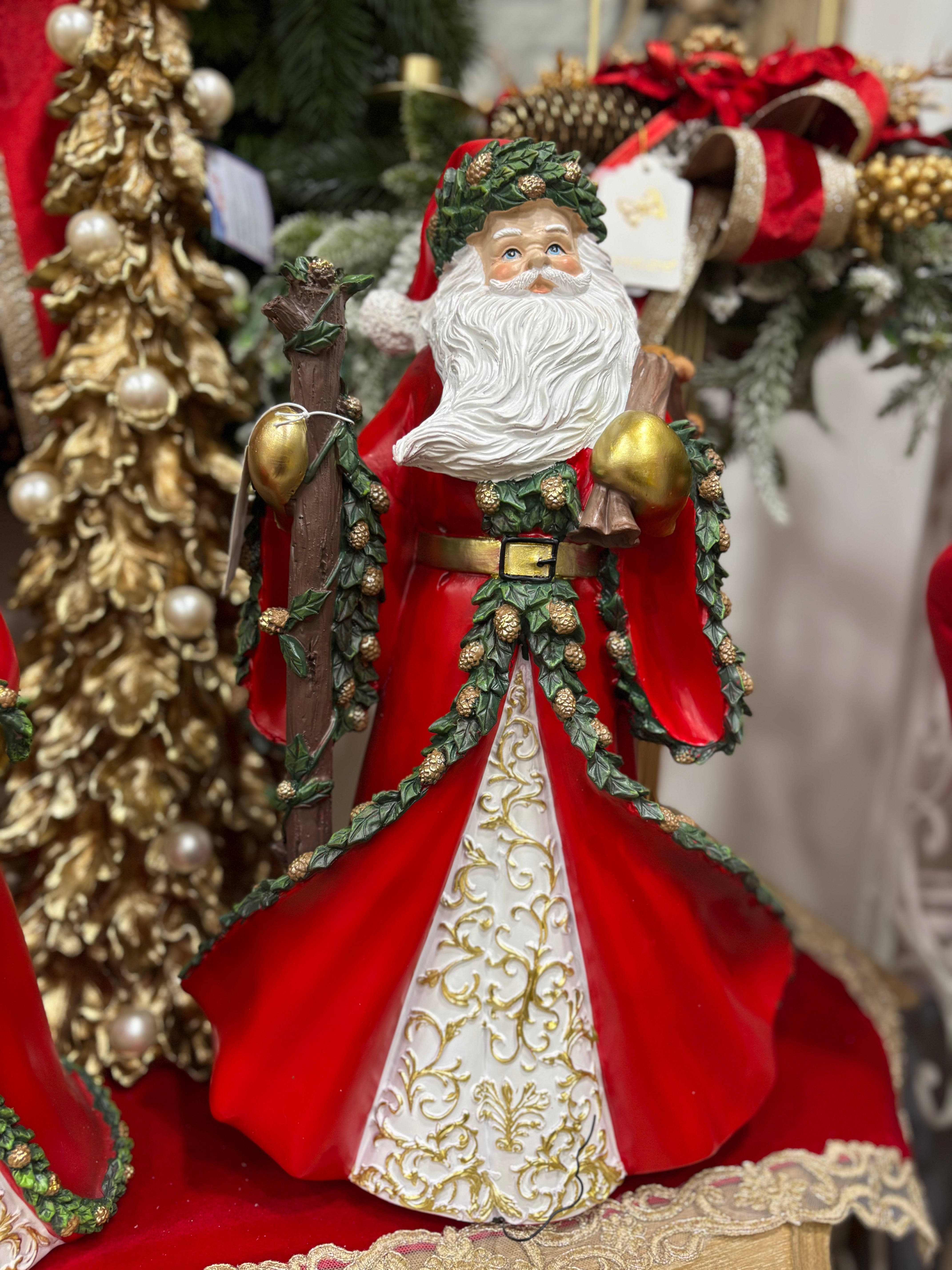 Fiori di lena Babbo Natale in resina con sacco 47 cm