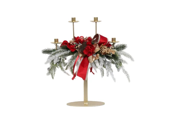 Fiori di Lena Candeliere 4 fiamme con fiori natalizi h 50cm