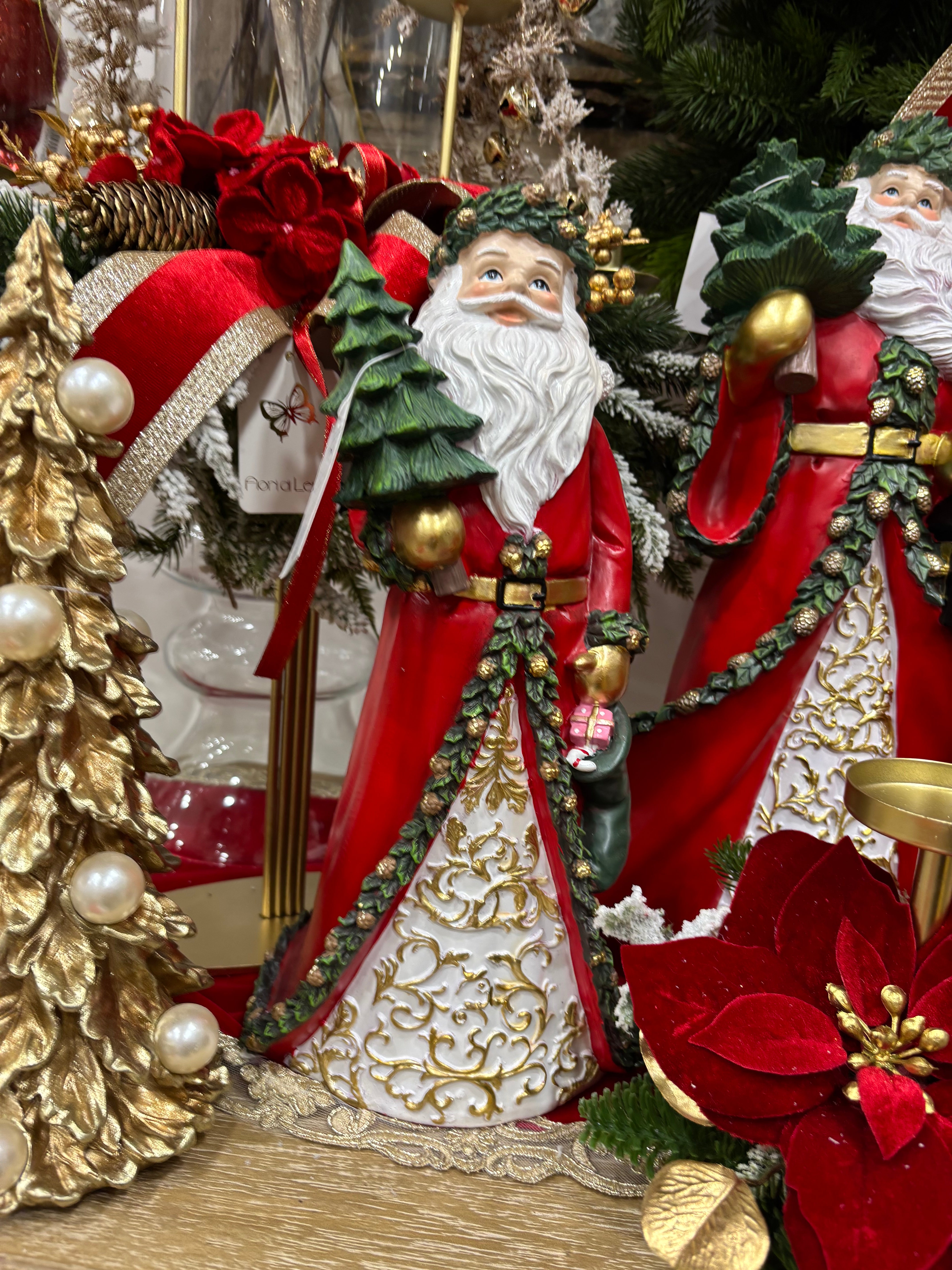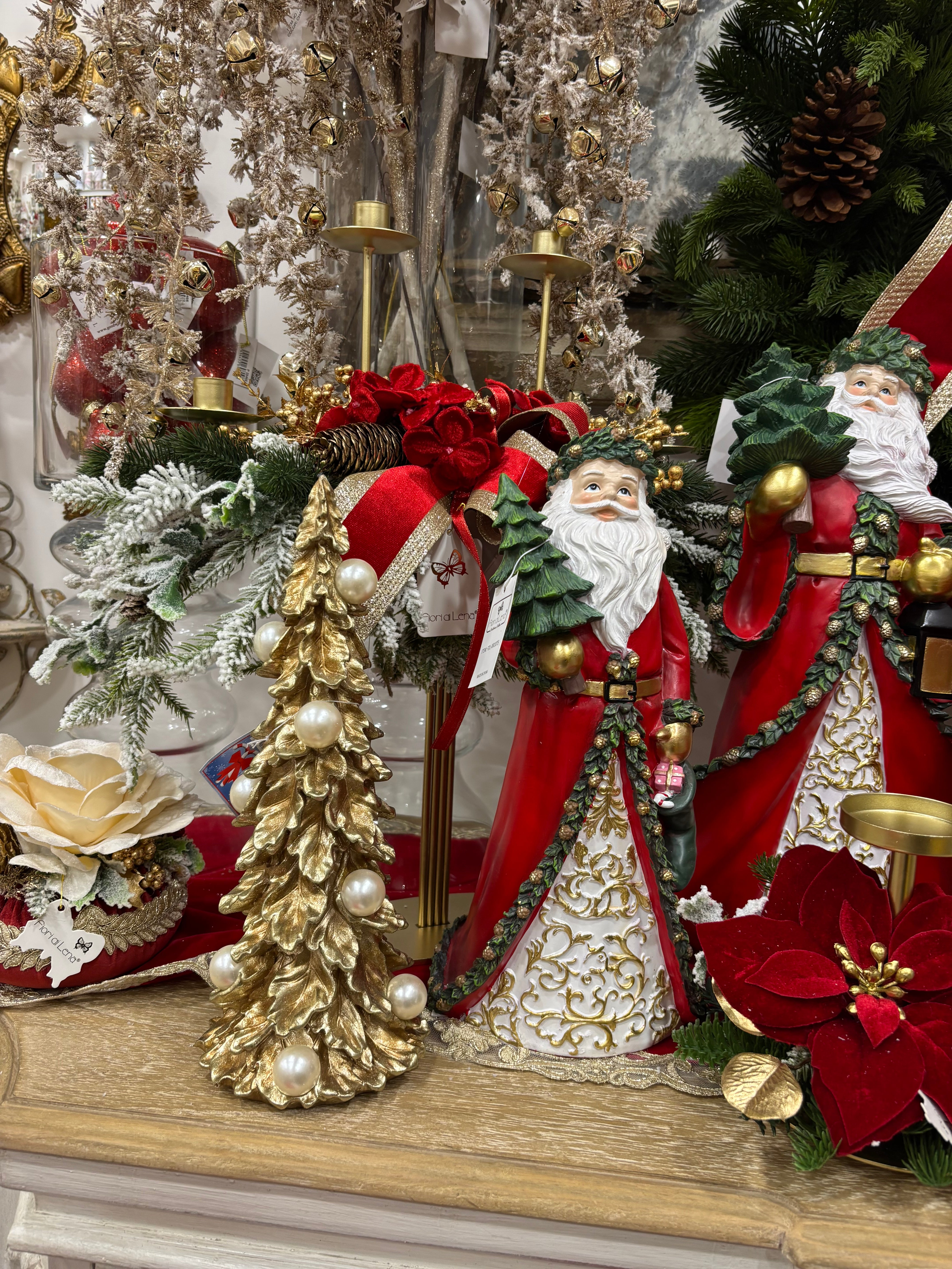 Fiori di lena Babbo Natale in resina con albero h 37,5 cm
