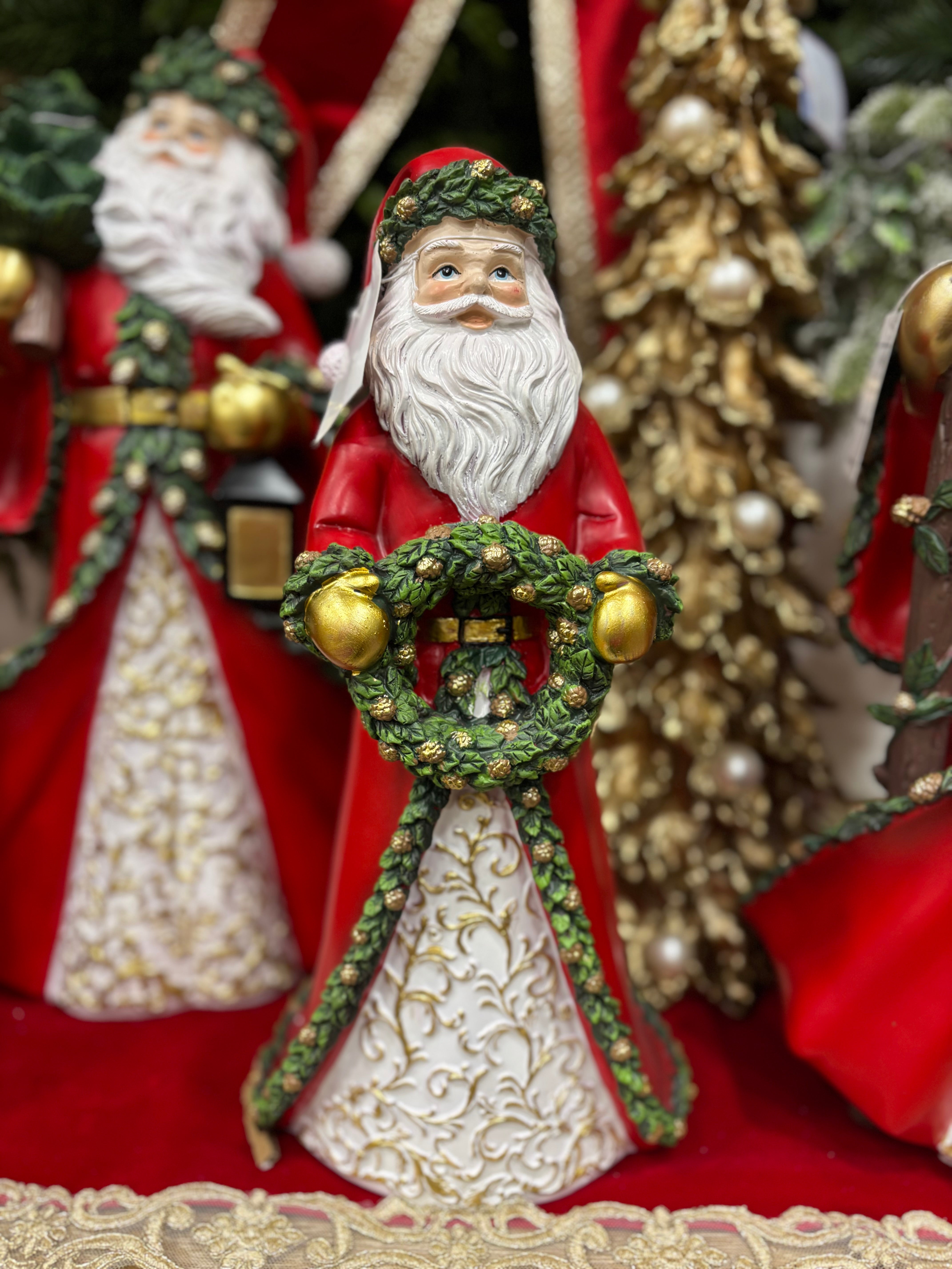 Fiori di lena Babbo Natale in resina con ghirlanda h 38,5 cm