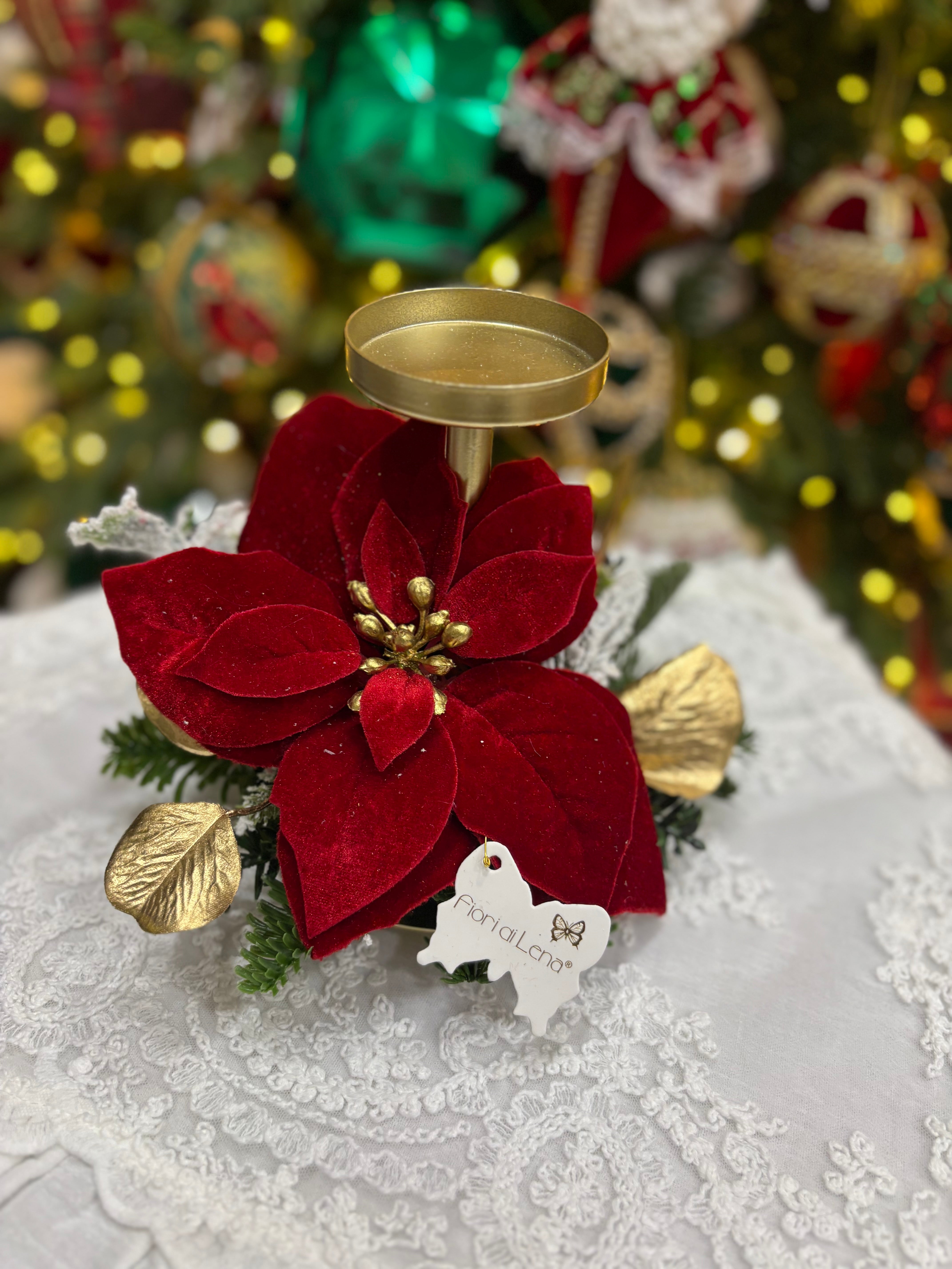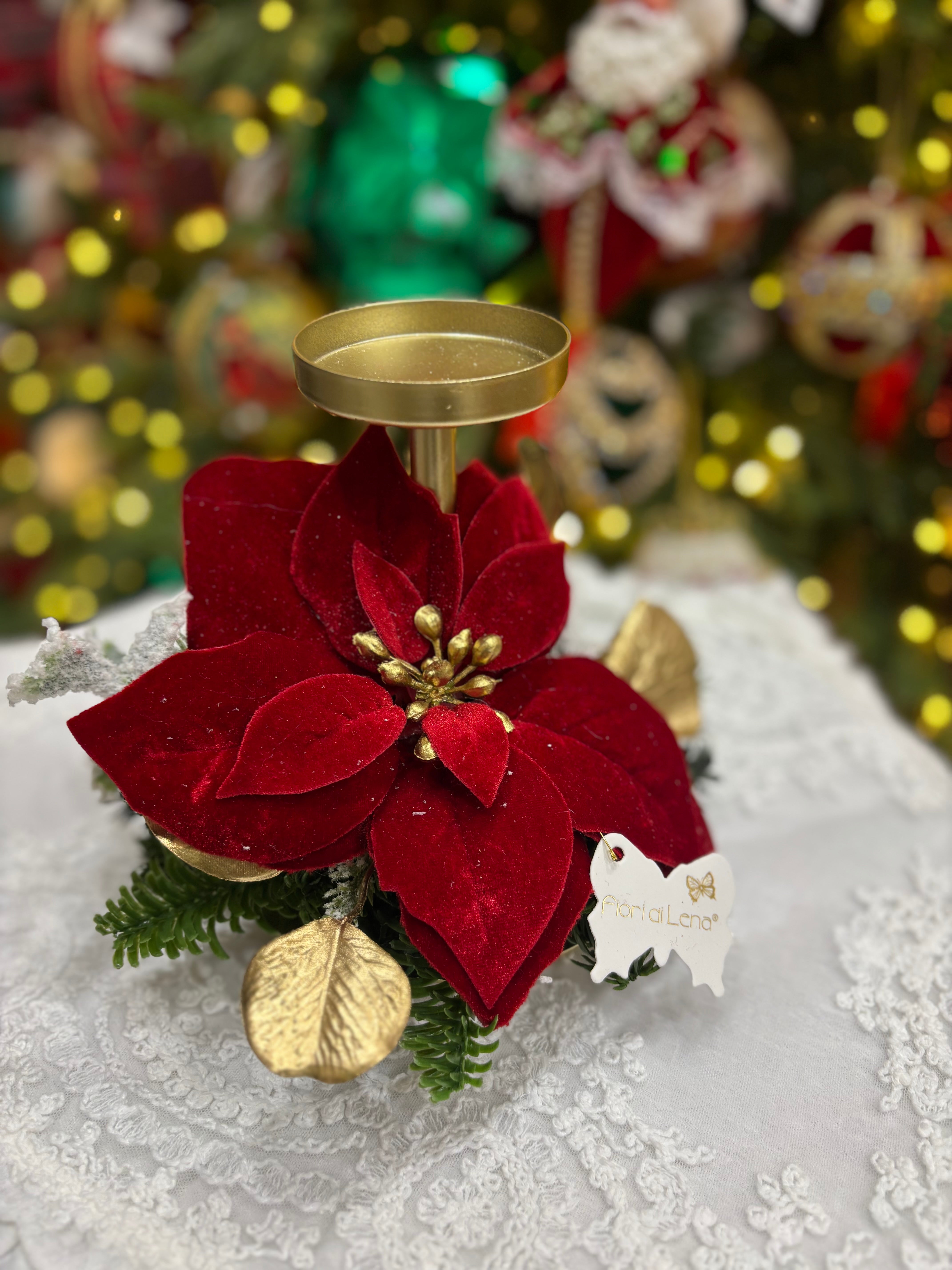 Fiori di lena candeliere 1 fiamma con decorazione stella di natale