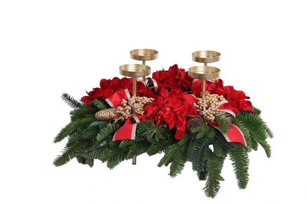 Fiori di Lena Candeliere 4 fiamme con fiori natalizi h 65 cm