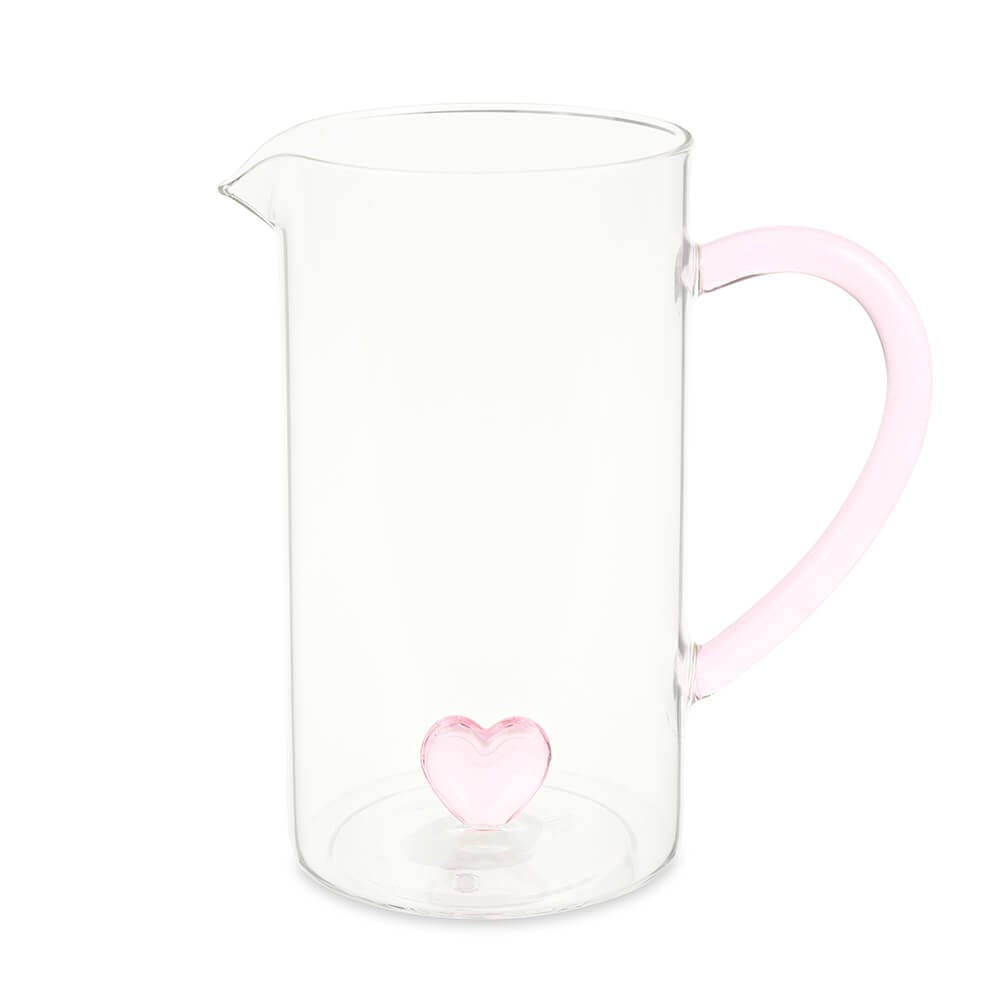 Nuvole di Stoffa Brocca in vetro borosilicato con cuore rosa collezione La Vie en Rose