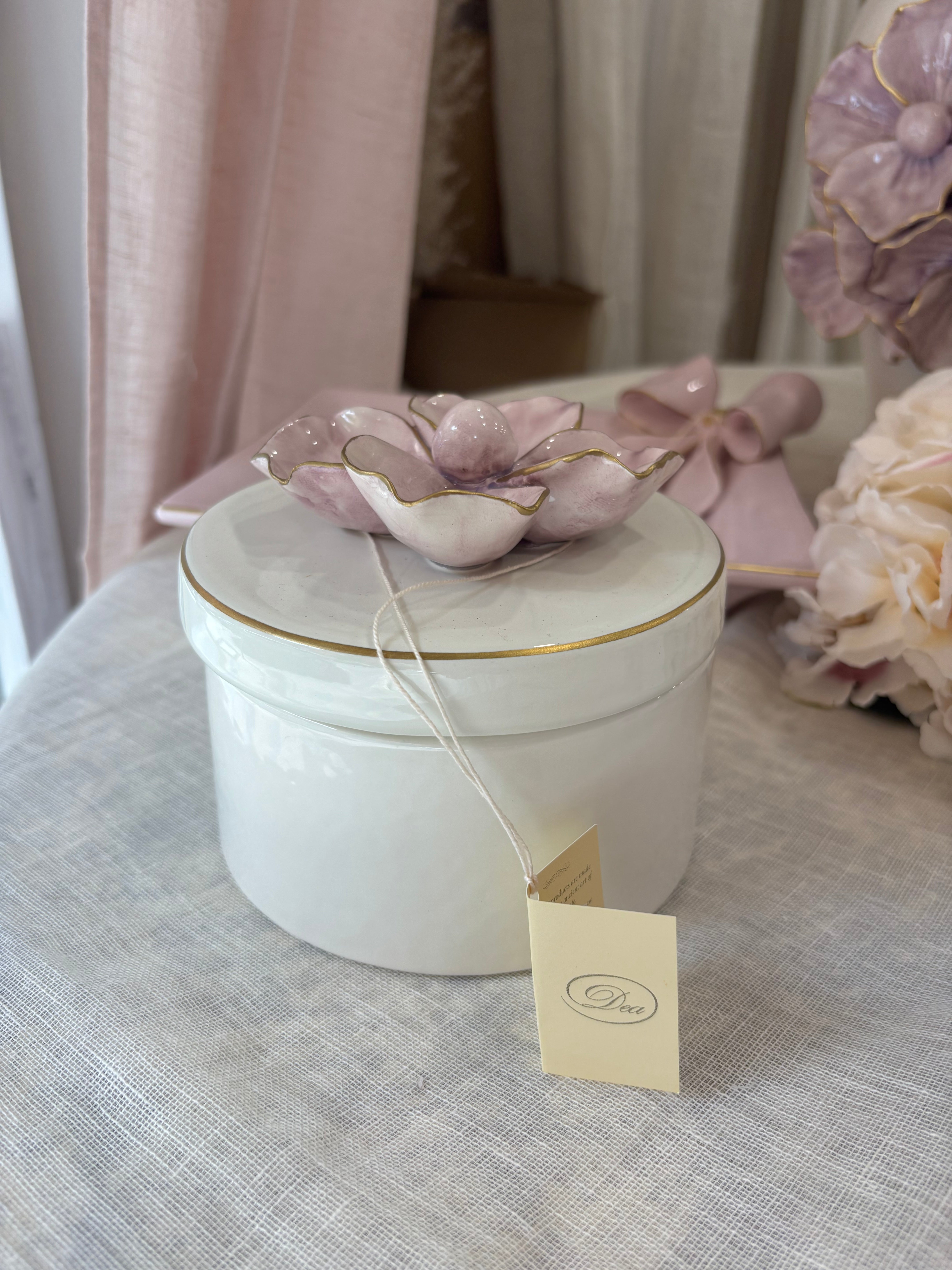 Dea Capodimonte scatola portagioie bianca con papavero a rilievo