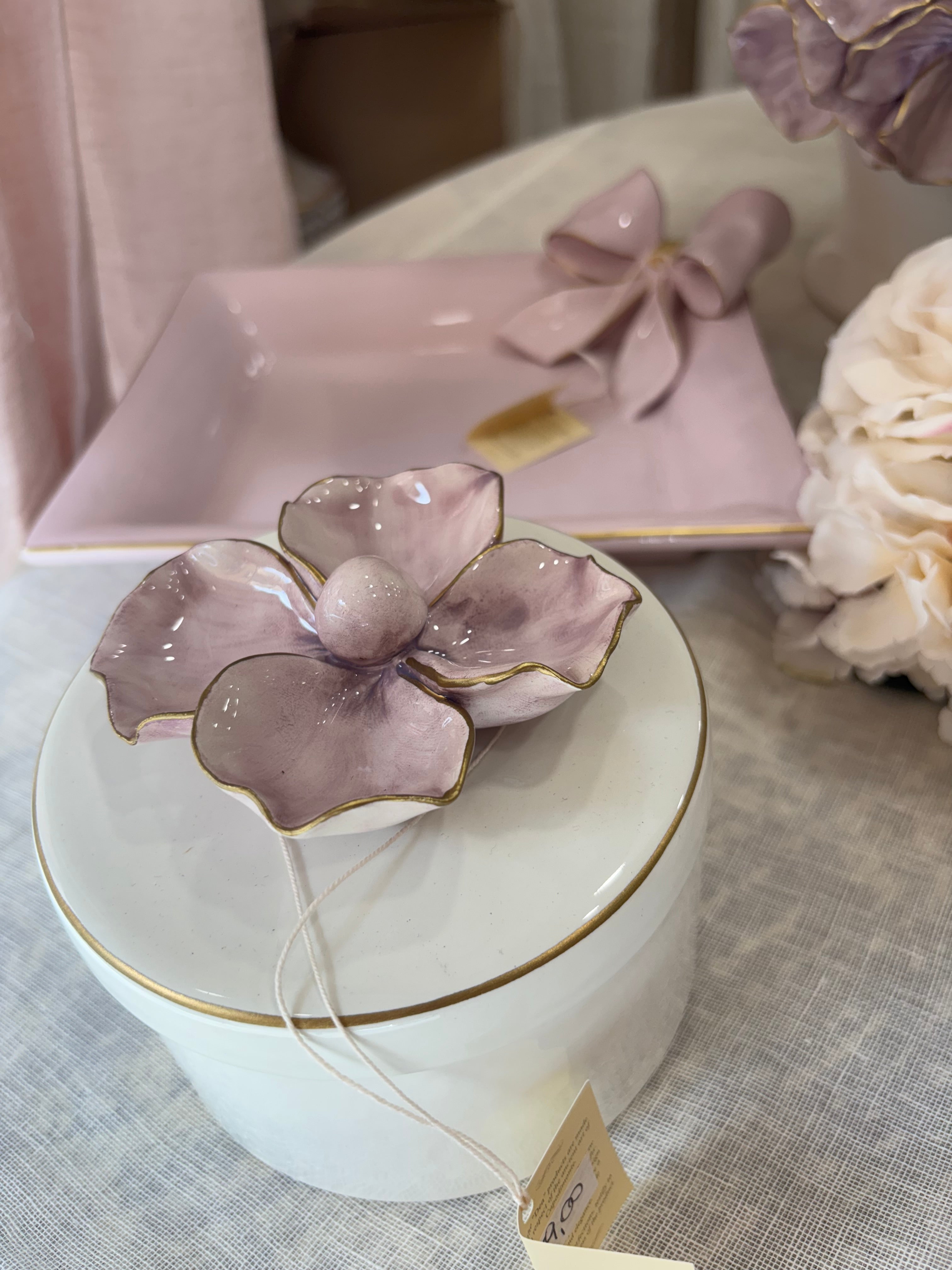 Dea Capodimonte scatola portagioie con papavero e calle a rilievo