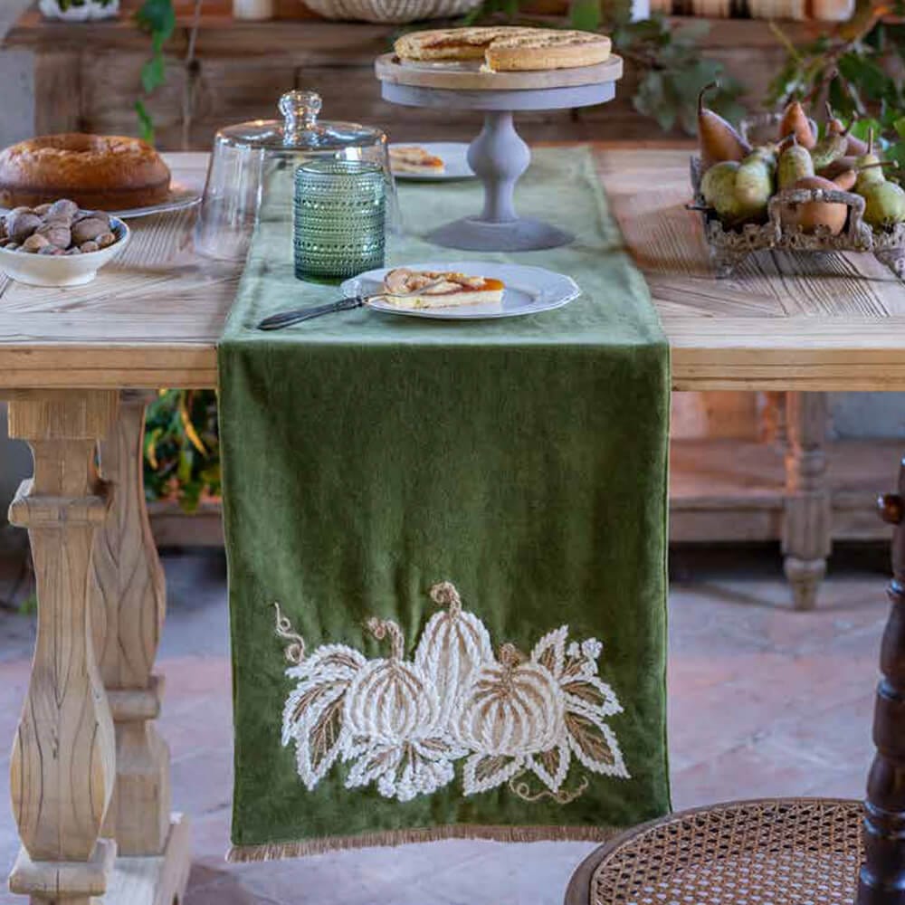 Blanc Mariclò Runner ricamato in velluto collezione Zucche di Sogno mis 50*140
