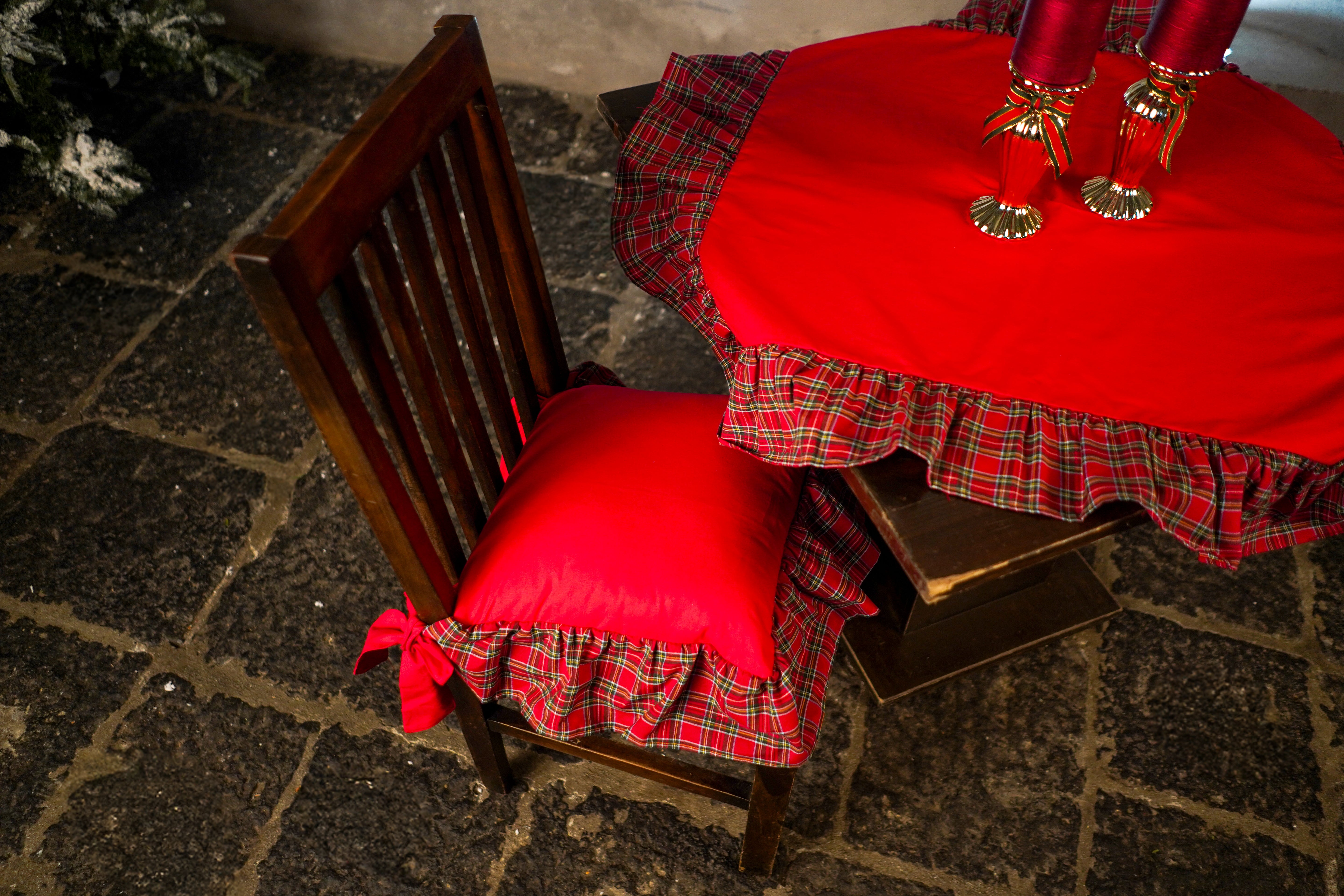 Clodette tovaglia copritavolo in velluto con balza tartan collezione Fantastique