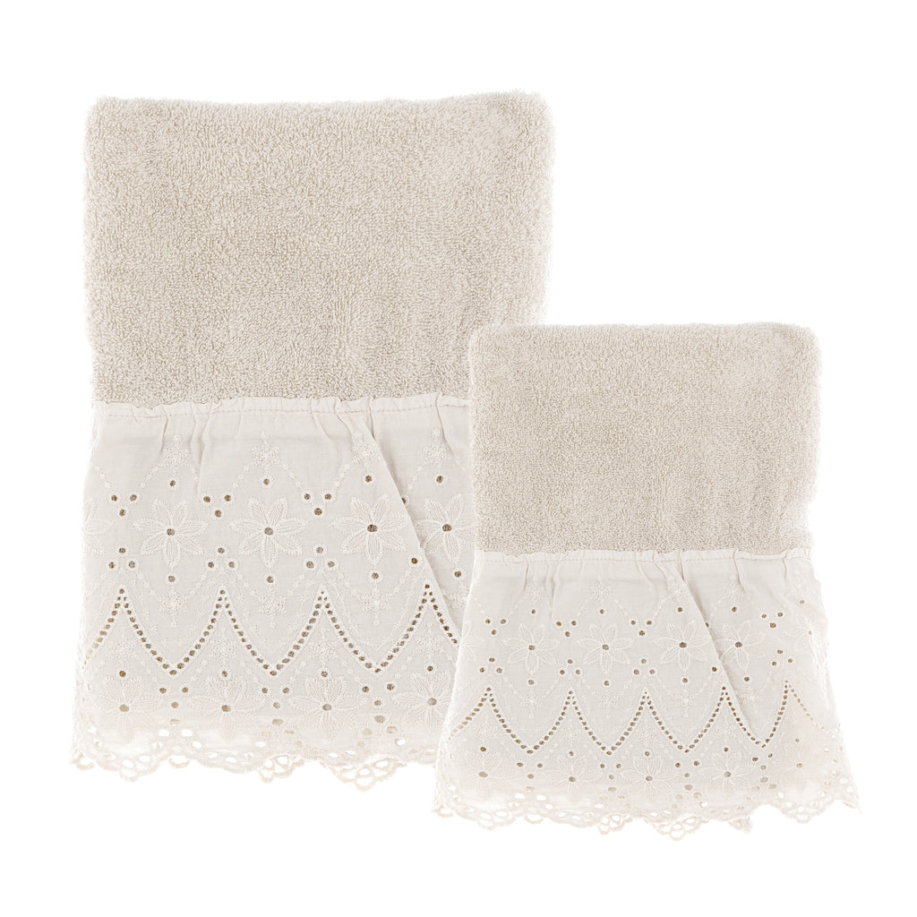 Blanc Mariclo' Coppia Spugna con Volant in Pizzo Sangallo Colore Panna