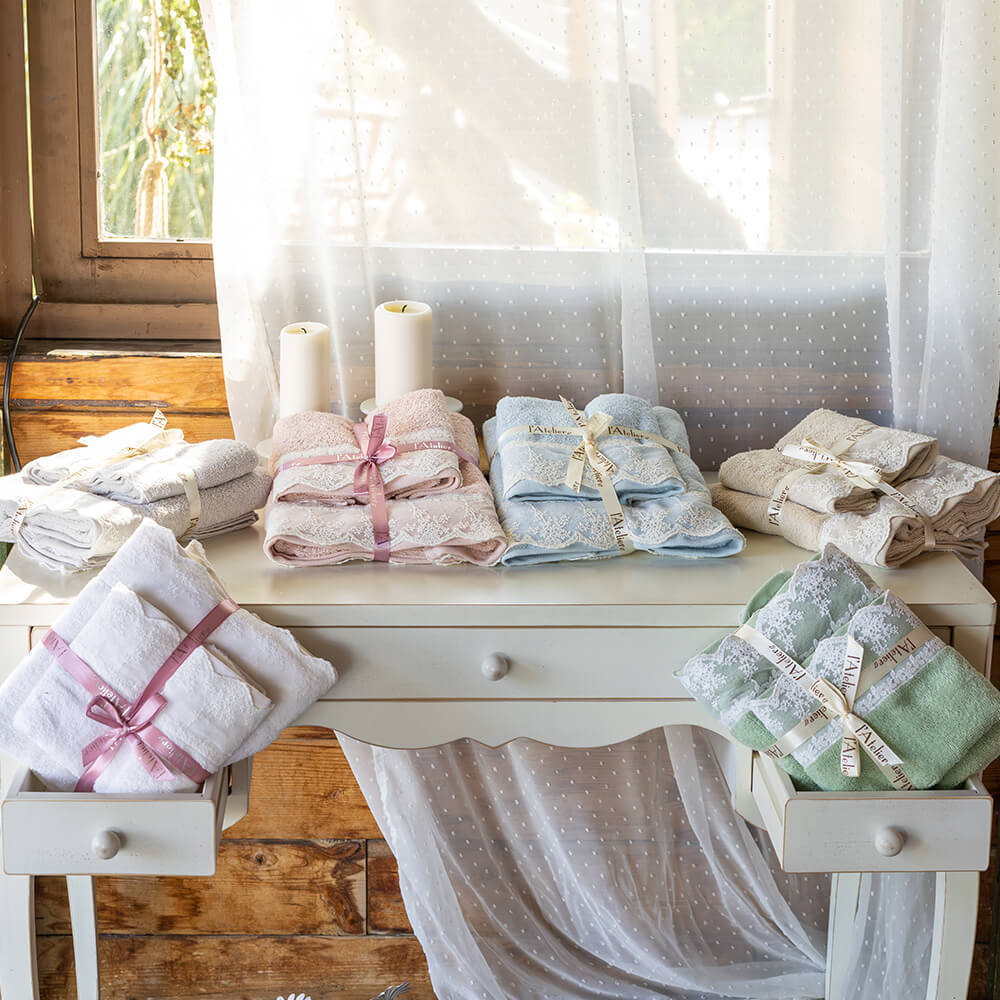L'Atelier 17 Set spugna asciugamani bagno collezione Monique con Pizzo
