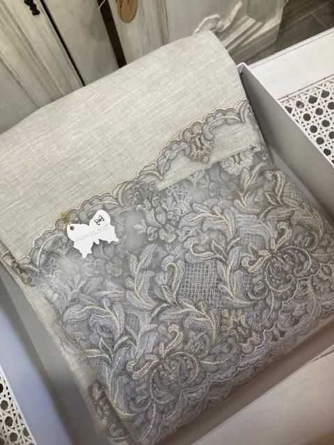 FIORI DI LENA CENTRO QUADRATO COPRITAVOLA IN LINO CON PIZZO FREGIO MISURA 160 X 160 CM