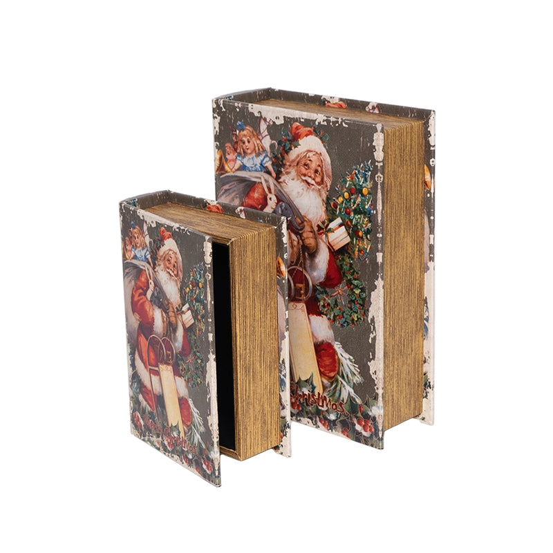 PLATHEA SET 2 SCATOLE CONTENITORI LIBRI BABBO NATALE IN LEGNO