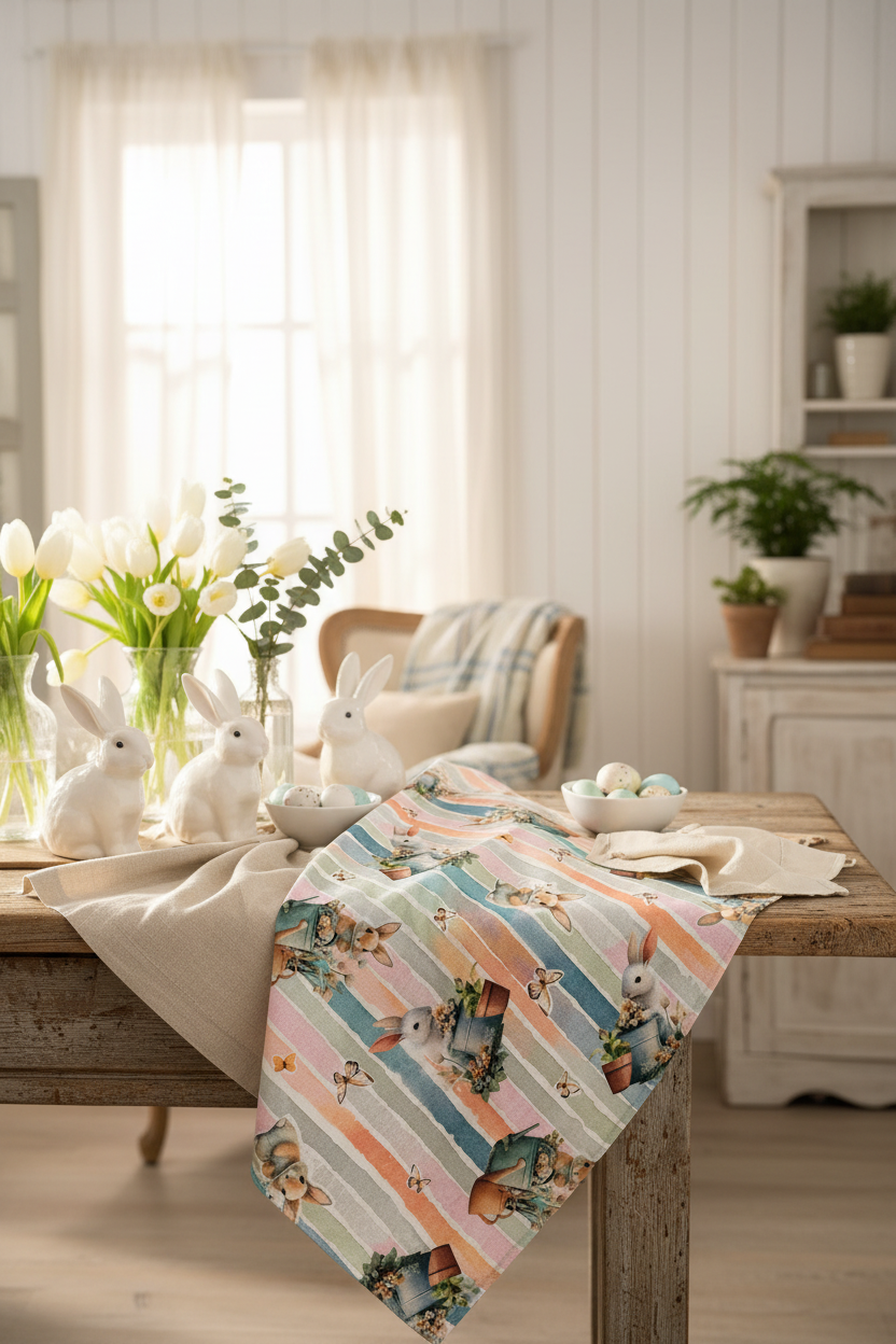 Fiori di lena centrotavola “Giardino Pasquale Incantato” con coniglietto removibile