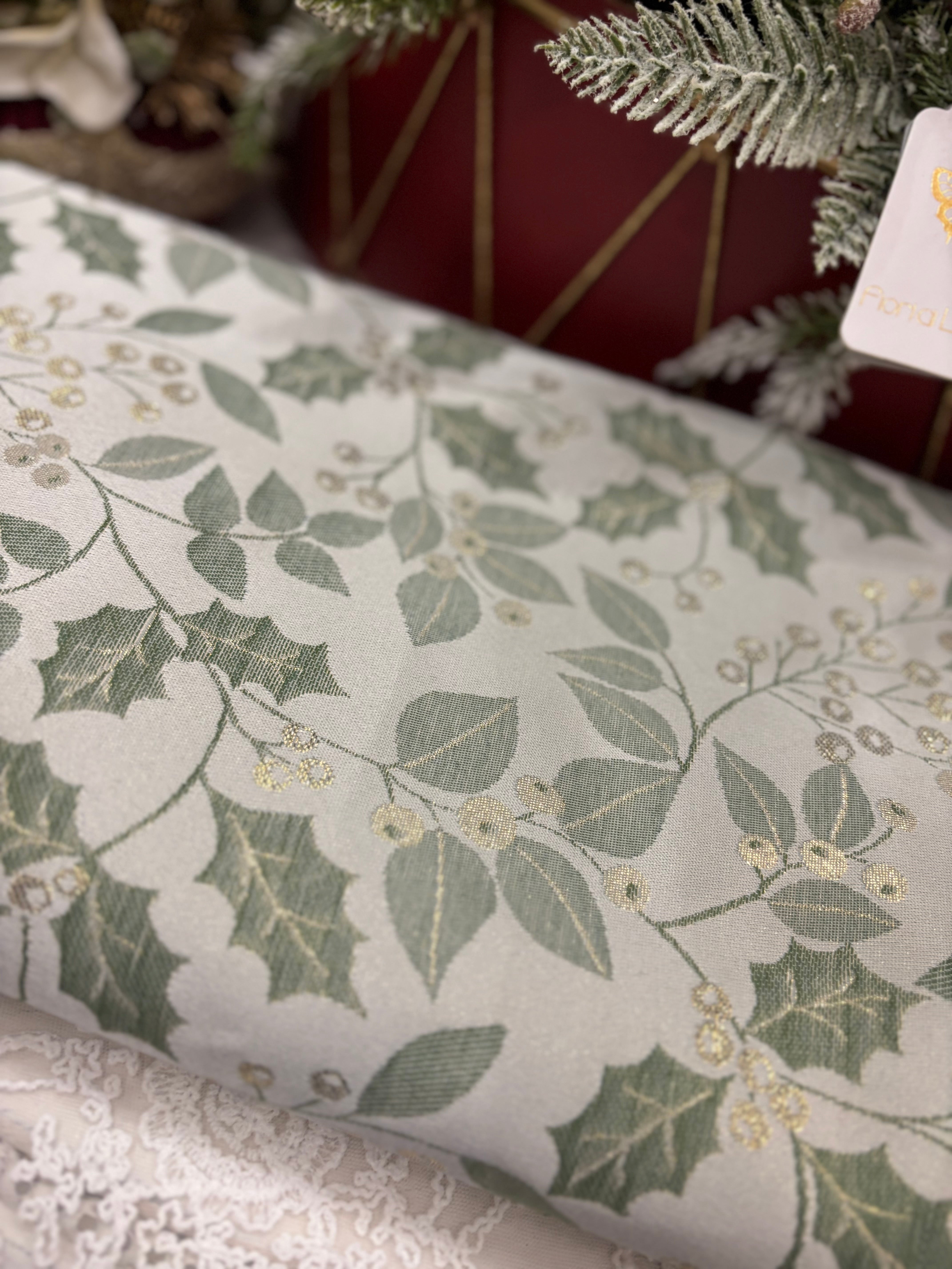 Tovaglia preziosa verde con aghifoglio mia 140 x 300 cm