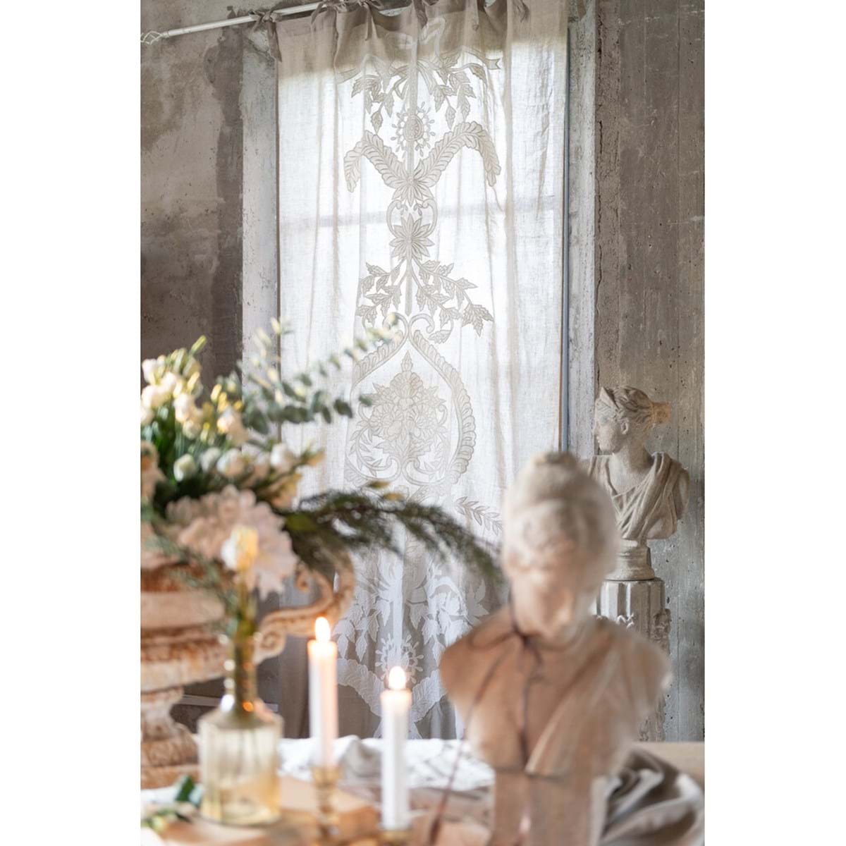 Blanc Mariclo' coppia tenda con foglie ricamate collezione Natural View