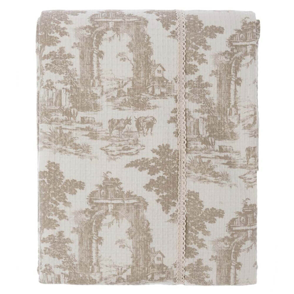 Blanc Mariclo' Copriletto Matrimoniale "Toile de Jouy" in Cotone Nido d’Ape