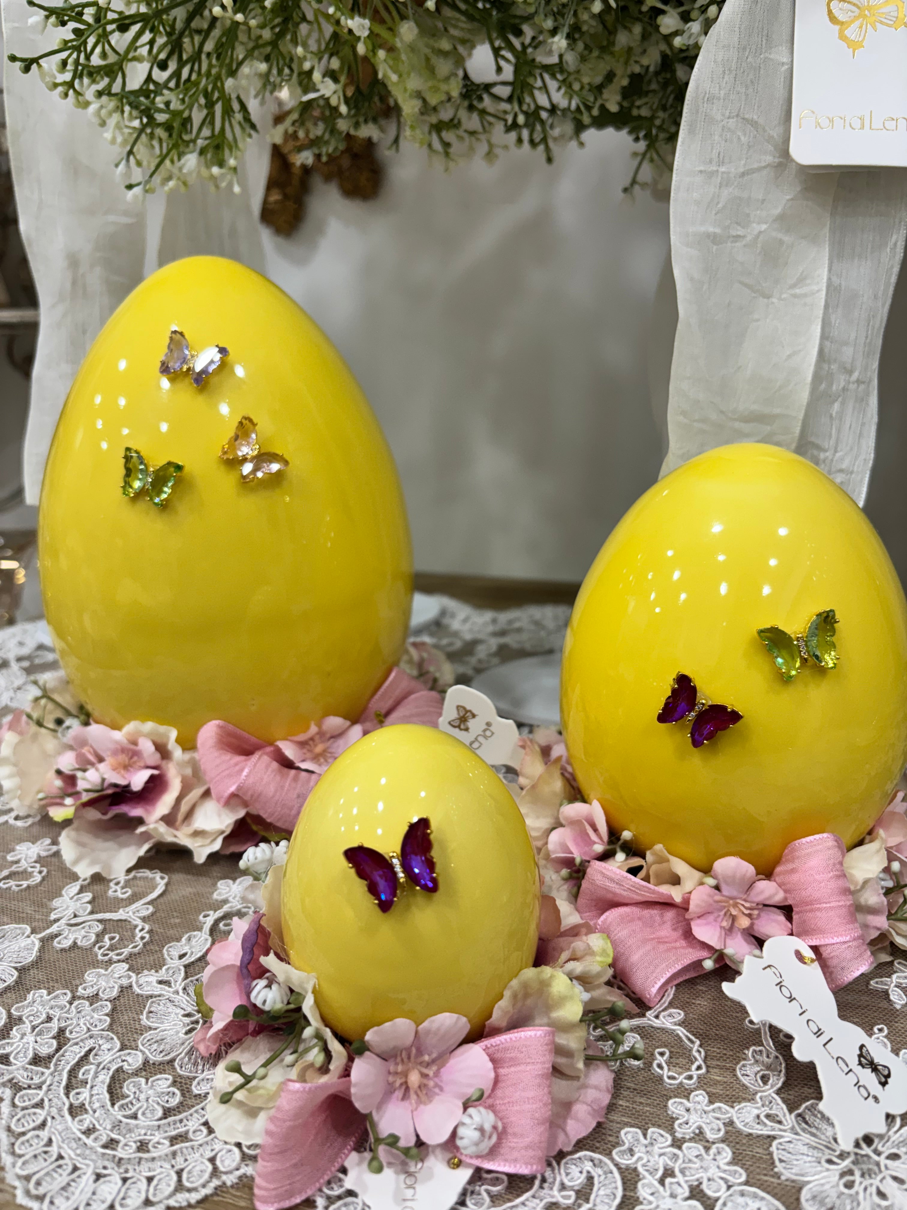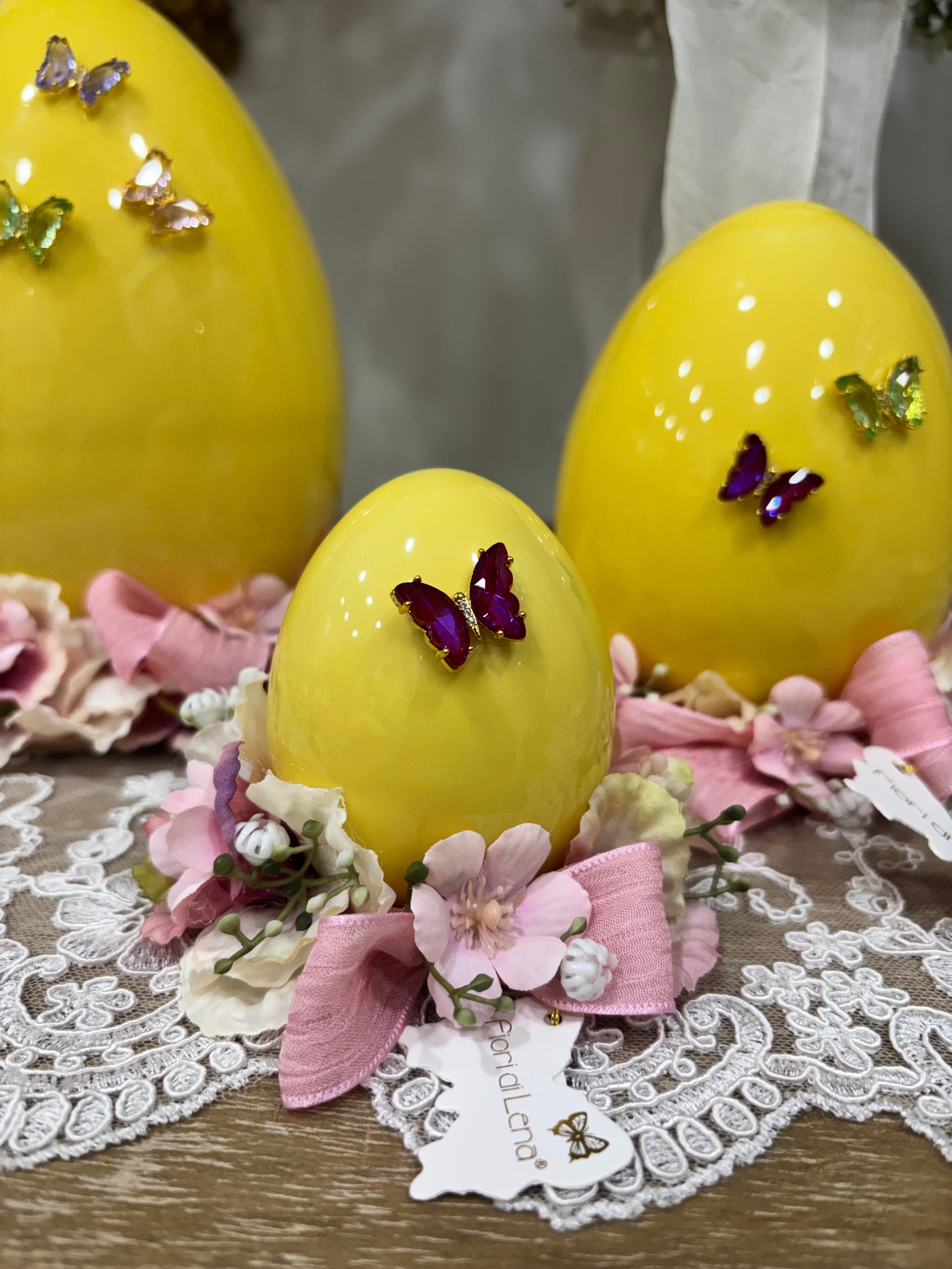 Fiori di Lena Uova in Ceramica Colore Giallo "Petali e Farfalle"