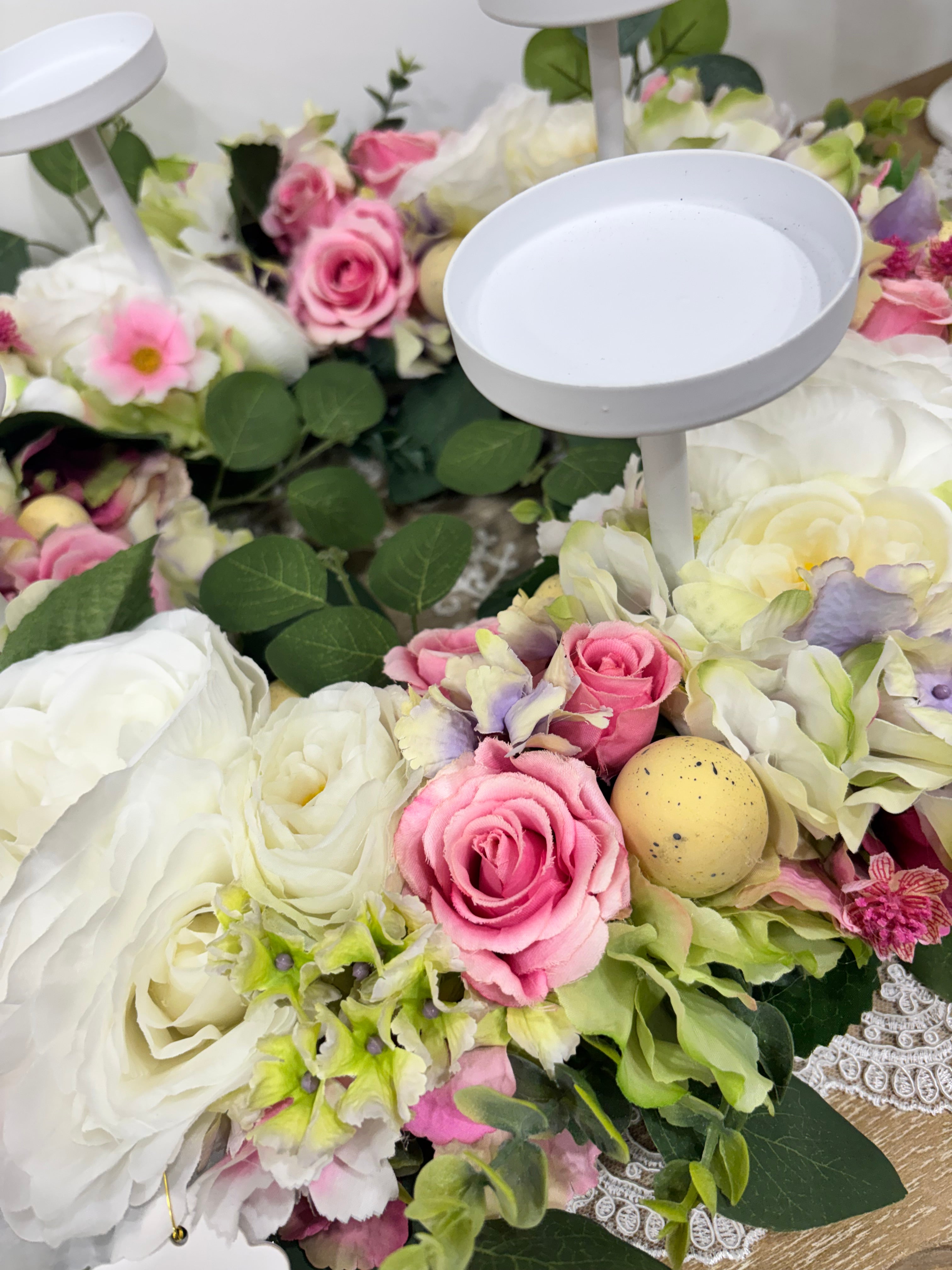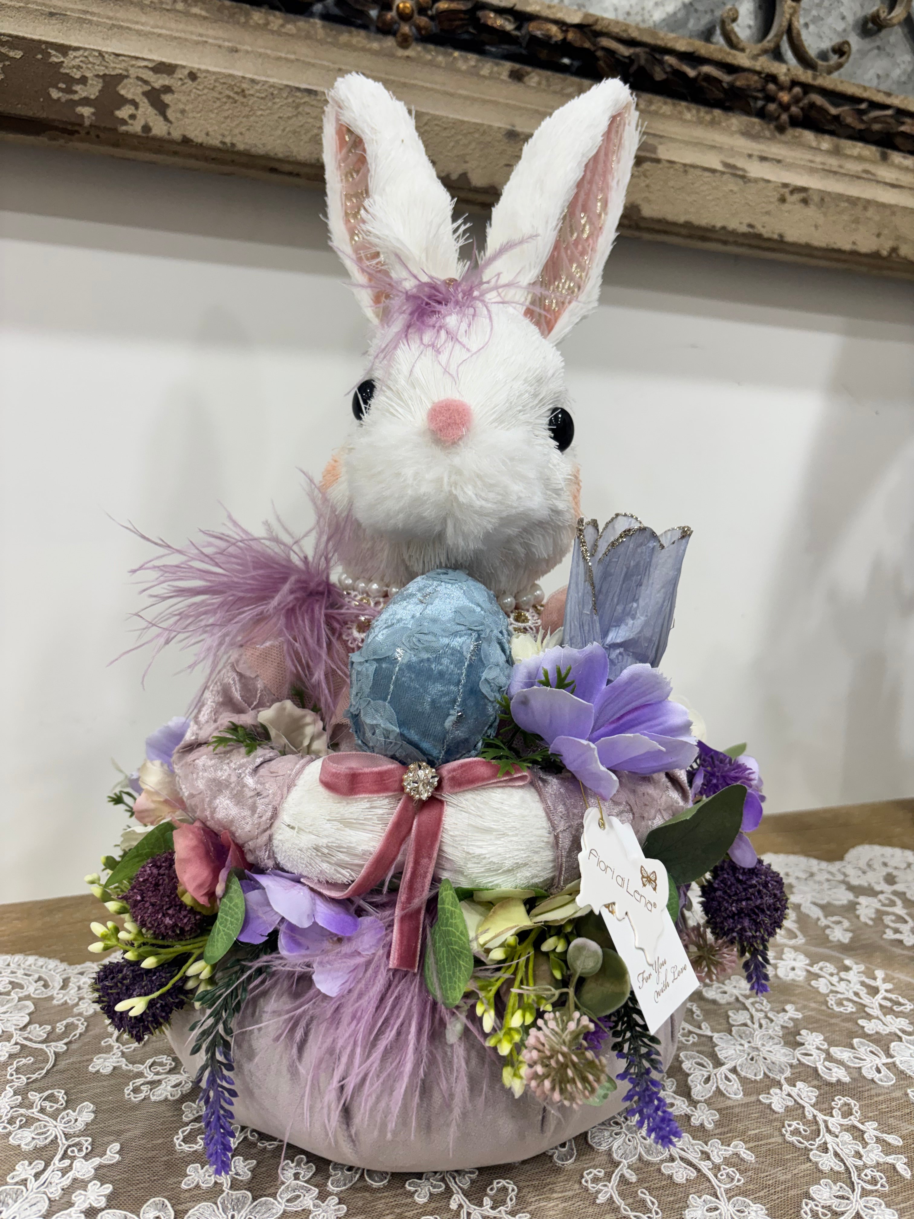 Fiori di lena centrotavola “Giardino Pasquale Incantato” con coniglietto removibile